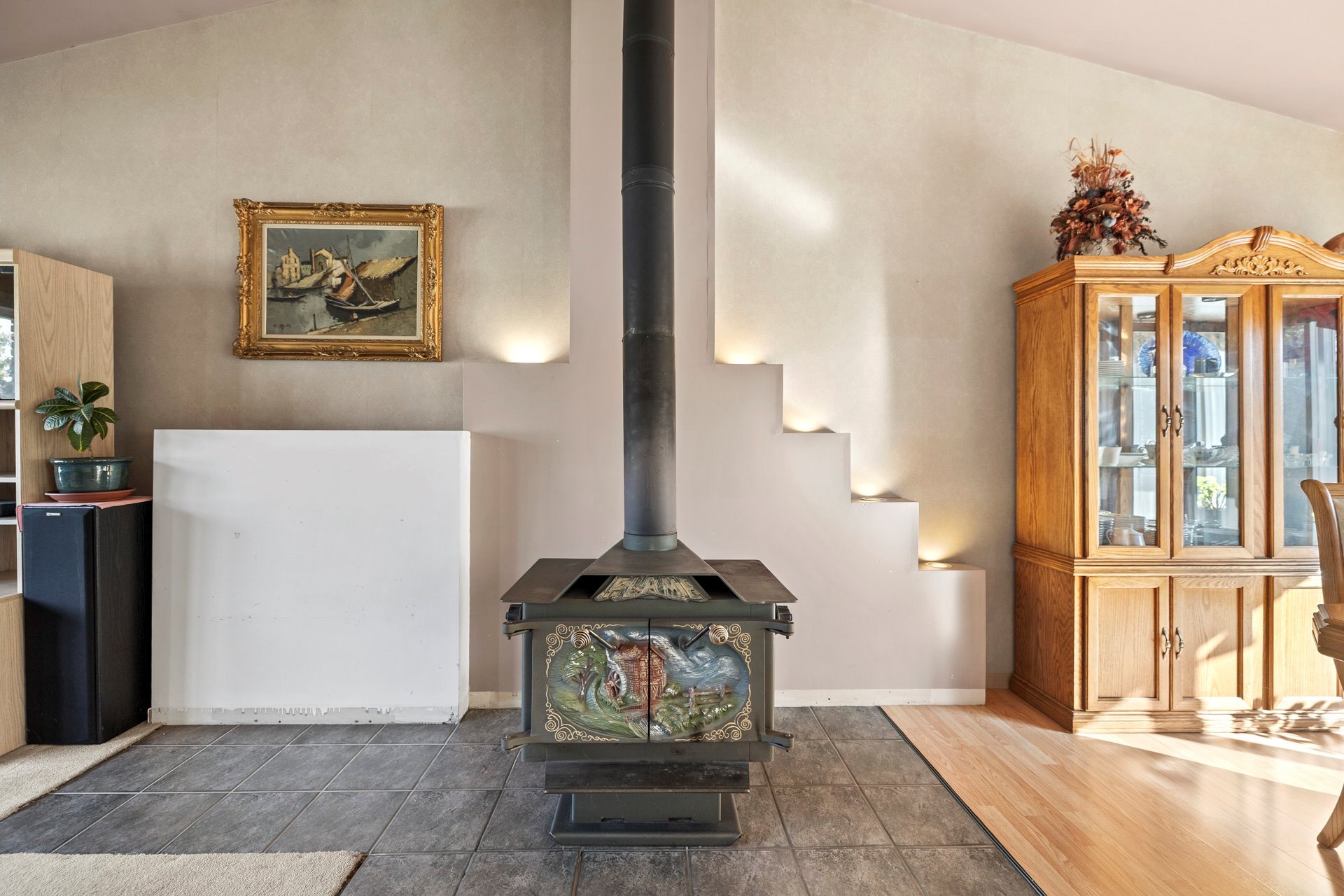 Inclus : Lave-vaisselle (non fonctionnel), réservoir eau chaude, foyer combustion lente, aspirateur central
