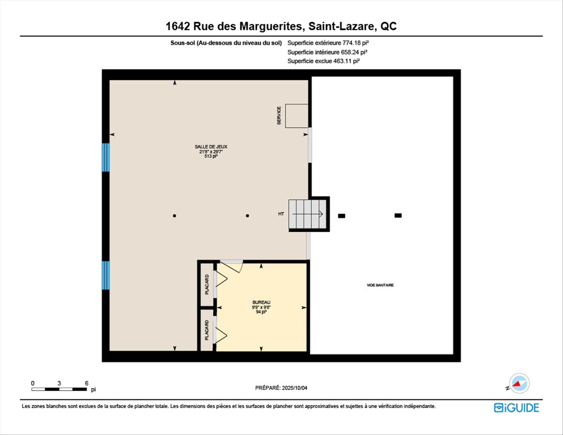 Sous-sol | 6 pieds et plus, Non aménagé |