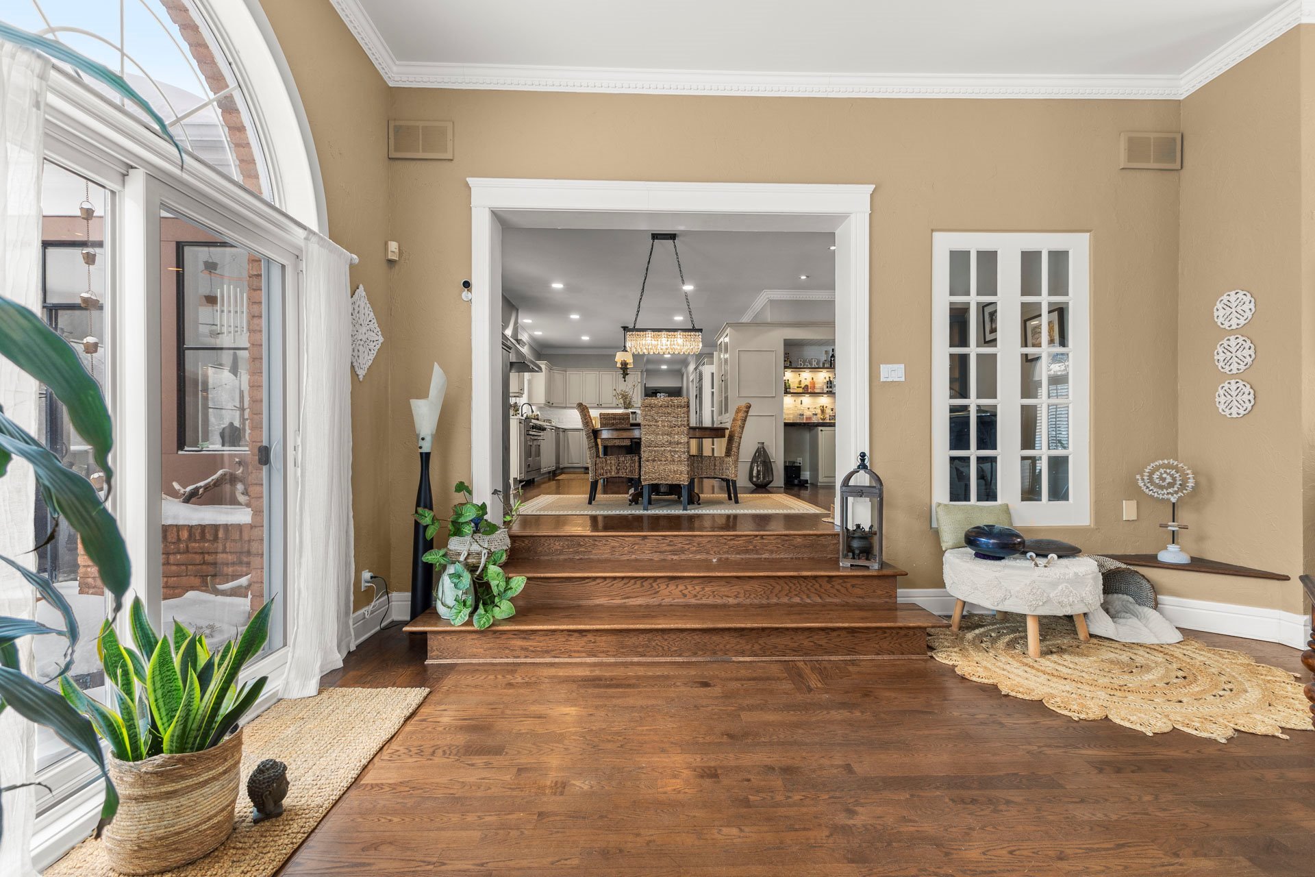 solarium rénové à côté de la cuisine avec un revêtement de