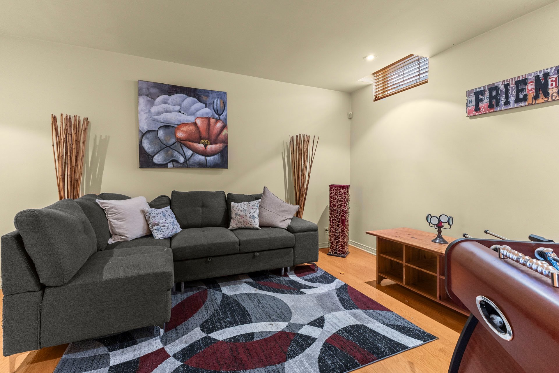 Le sous-sol aménagé comprend une salle de jeux, une