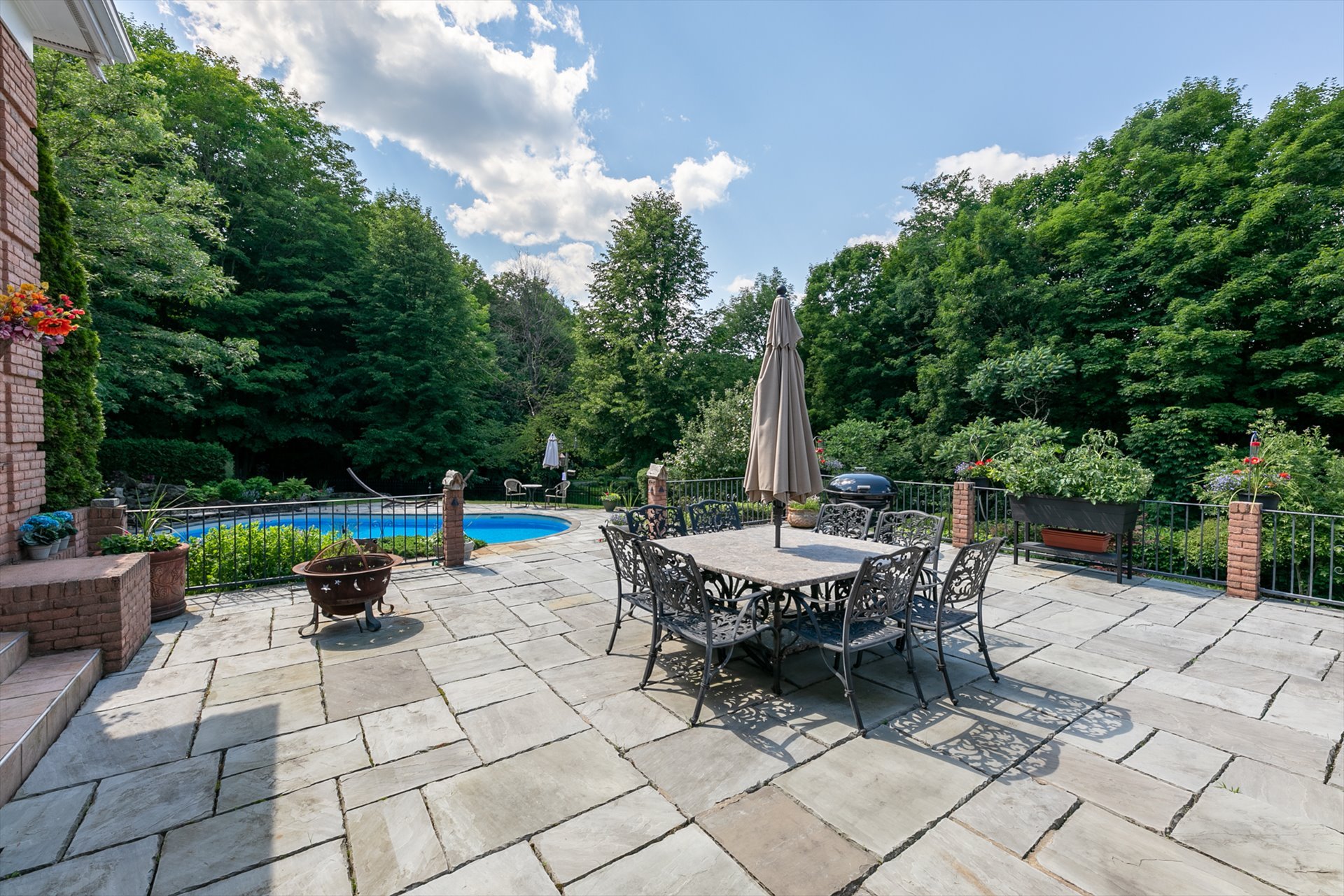 creusée chauffée, un patio en pierre, une pergola, un coin