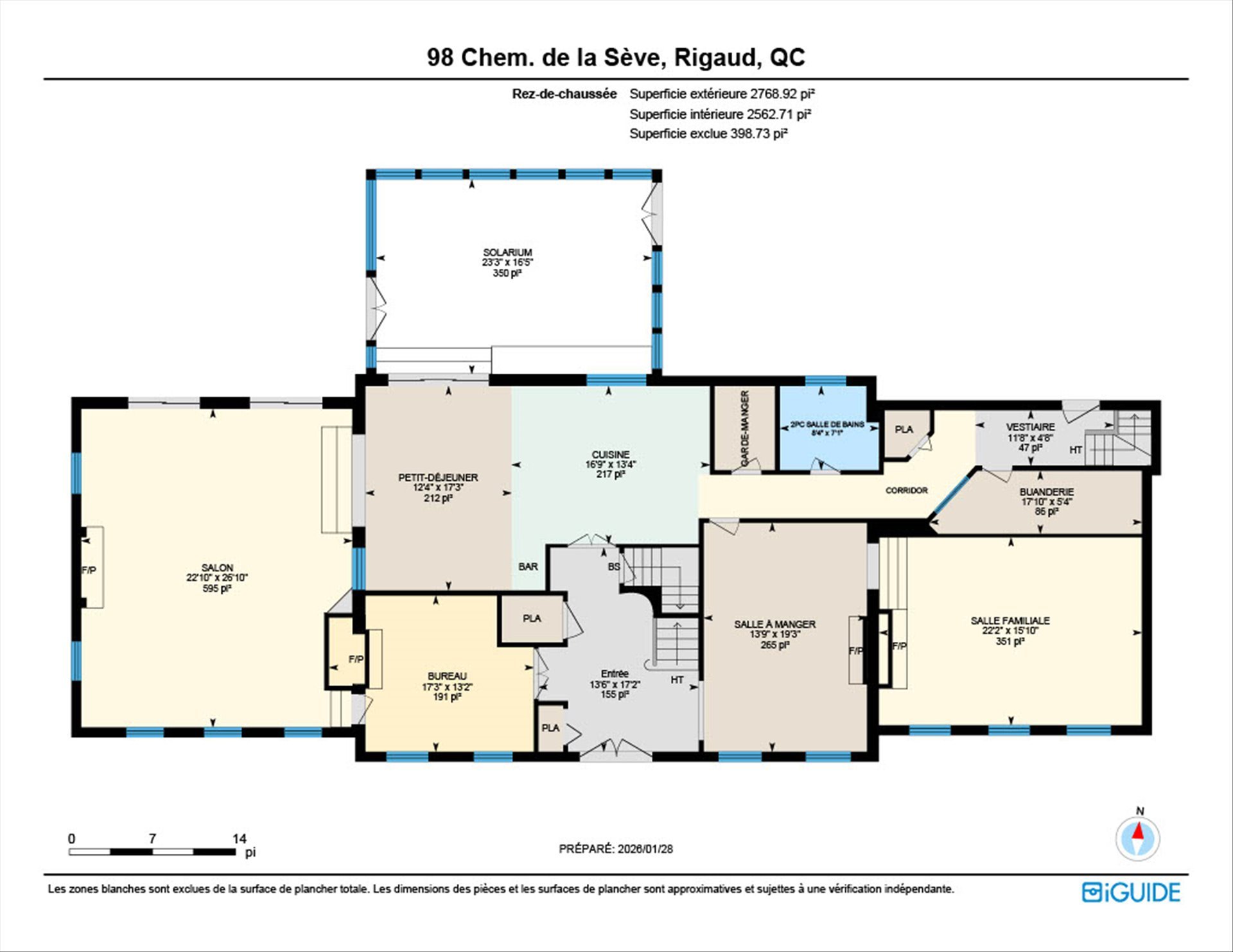 | Solarium | 16.5 x 23.3 P | Rez-de-chaussée | Couvre-sol souple |