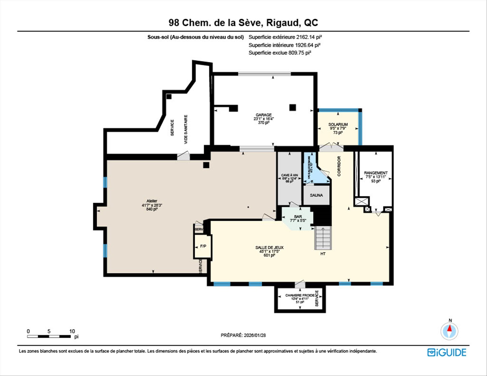 | Salle de jeux | 45.1 x 17.5 P | Sous-sol | Bois |