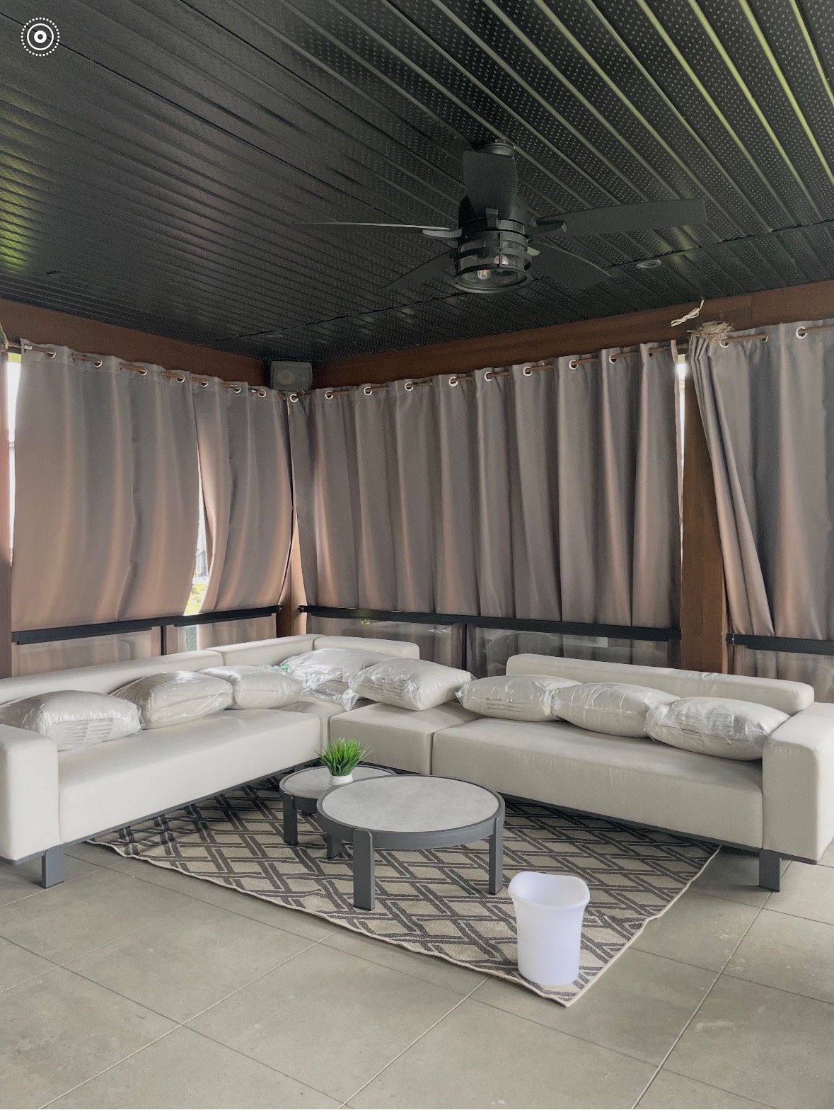 *Patio couvert : vaste espace en béton sous le toit pour
