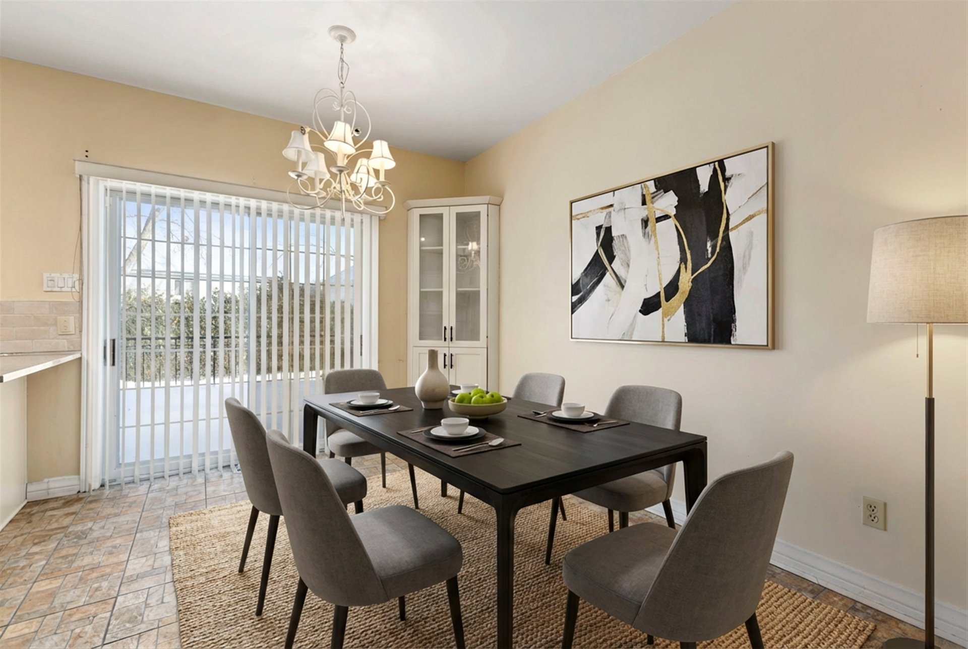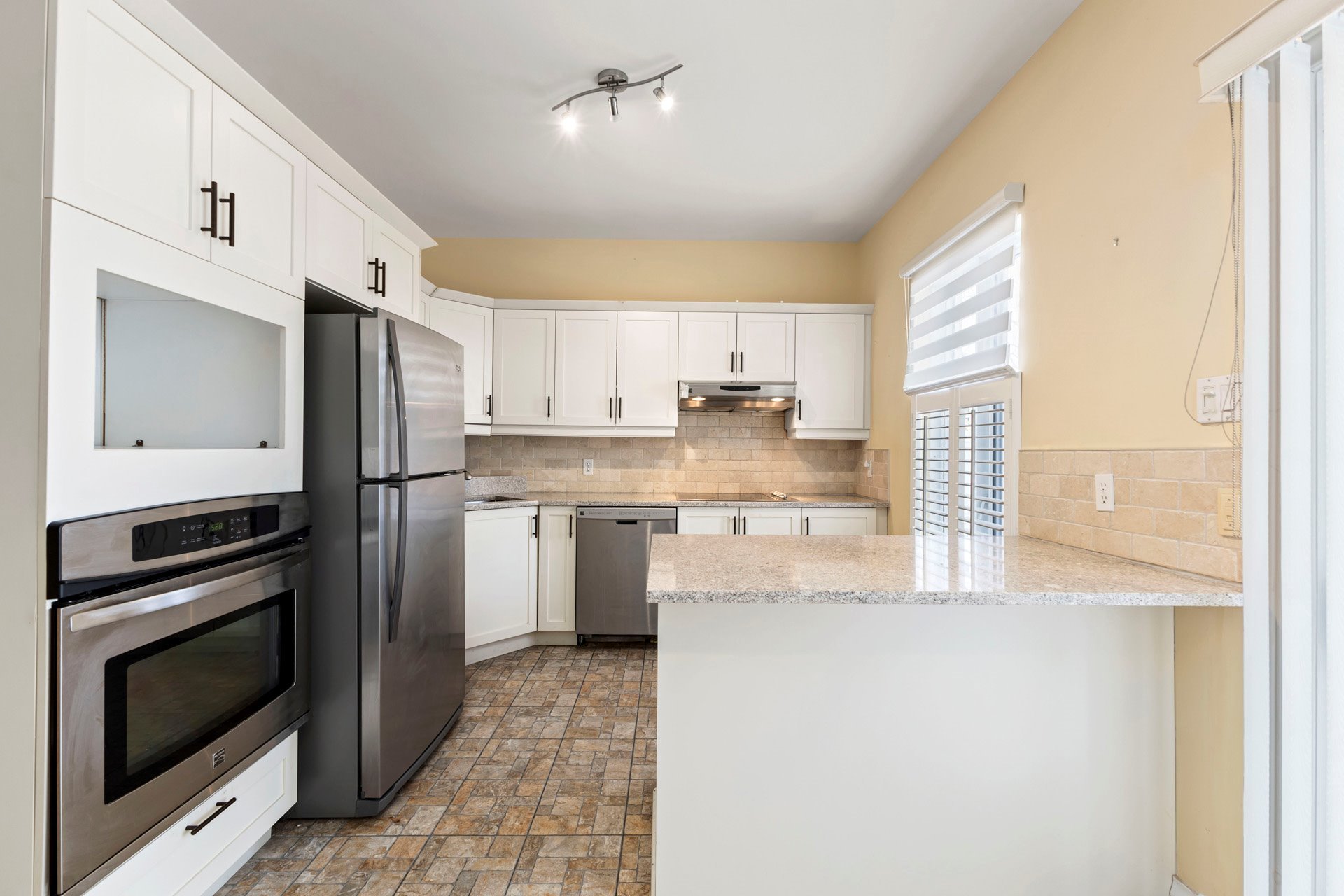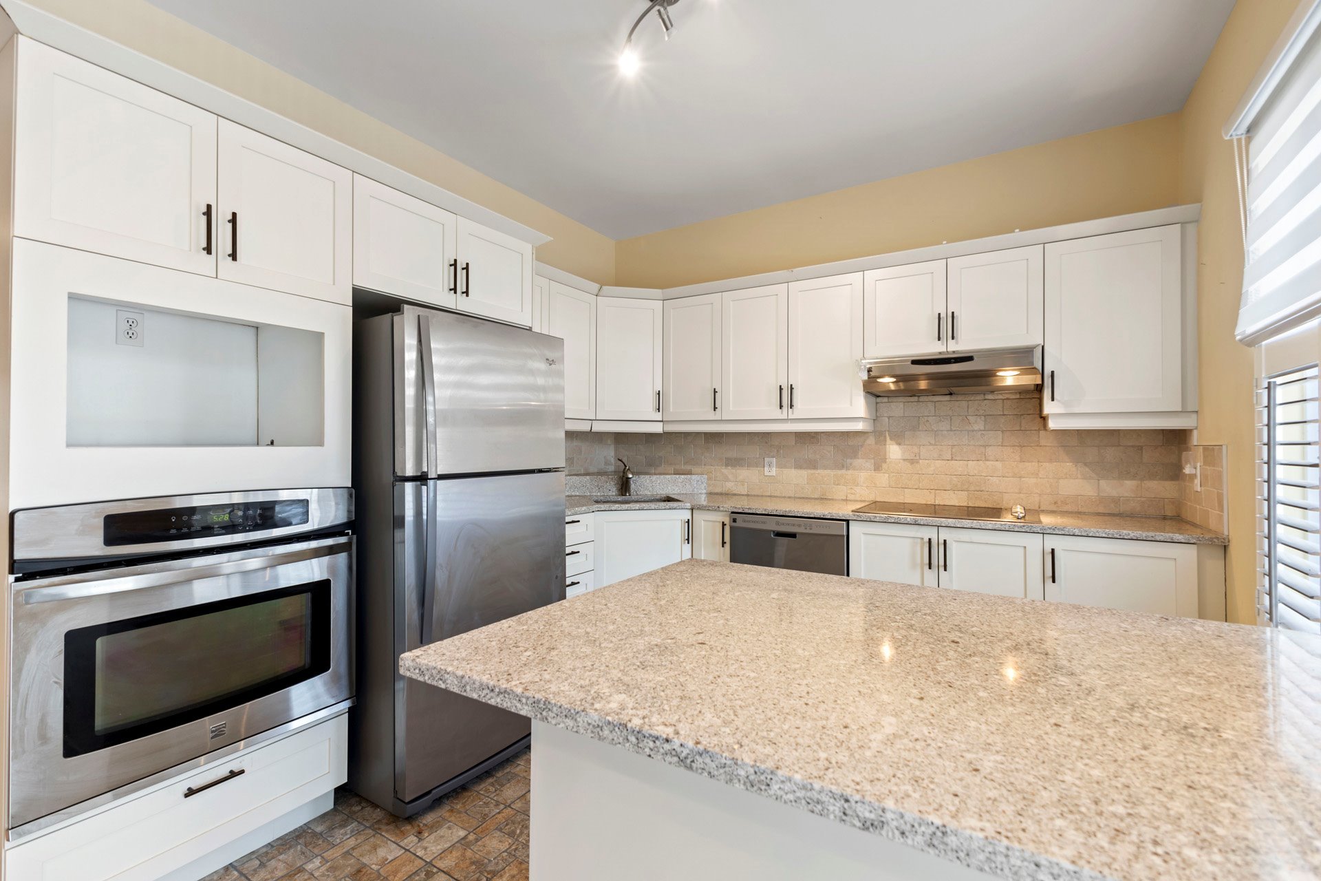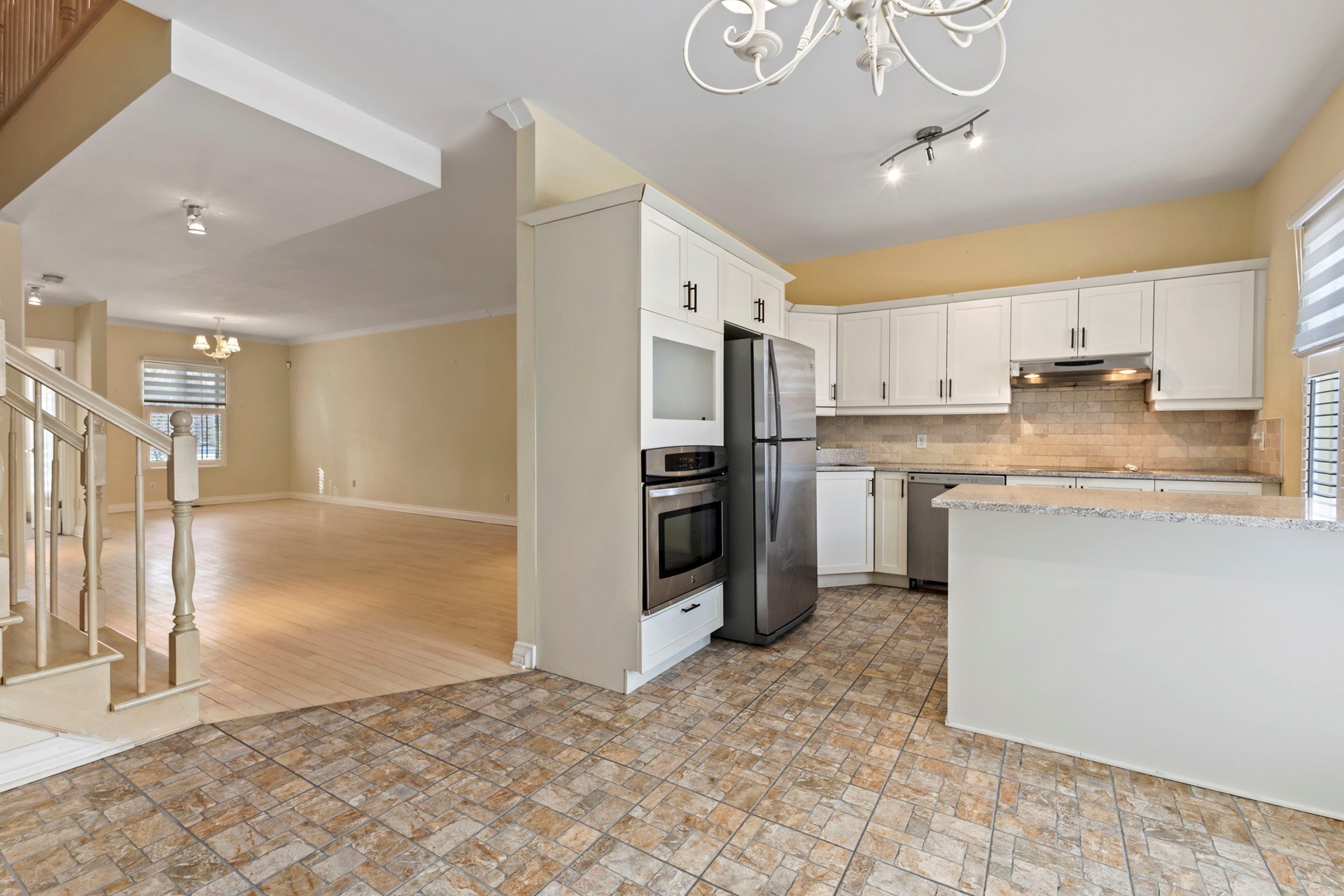 Inclus : Réfrigérateur, cuisinière et hotte, lave-vaisselle, laveuse, sécheuse, tous les stores et rideaux