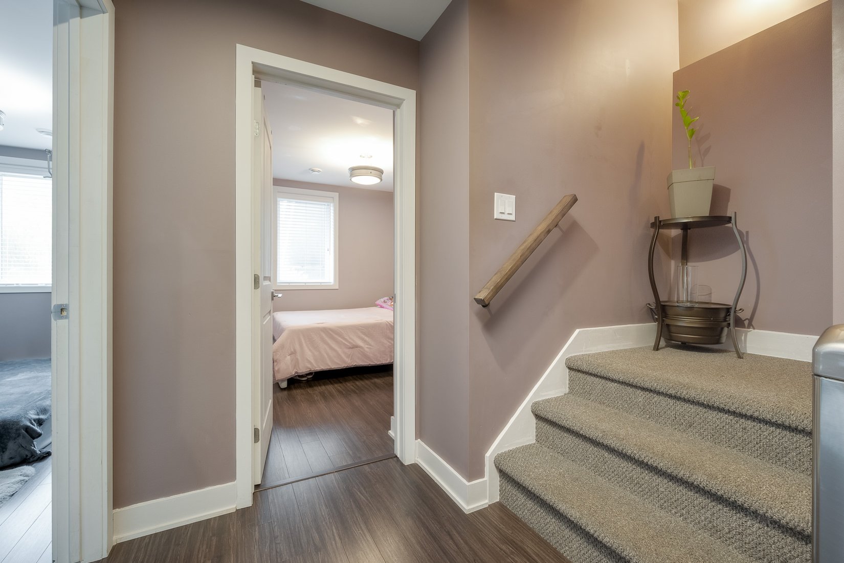 L'escalier bien éclairé par la lumière naturelle vous mène