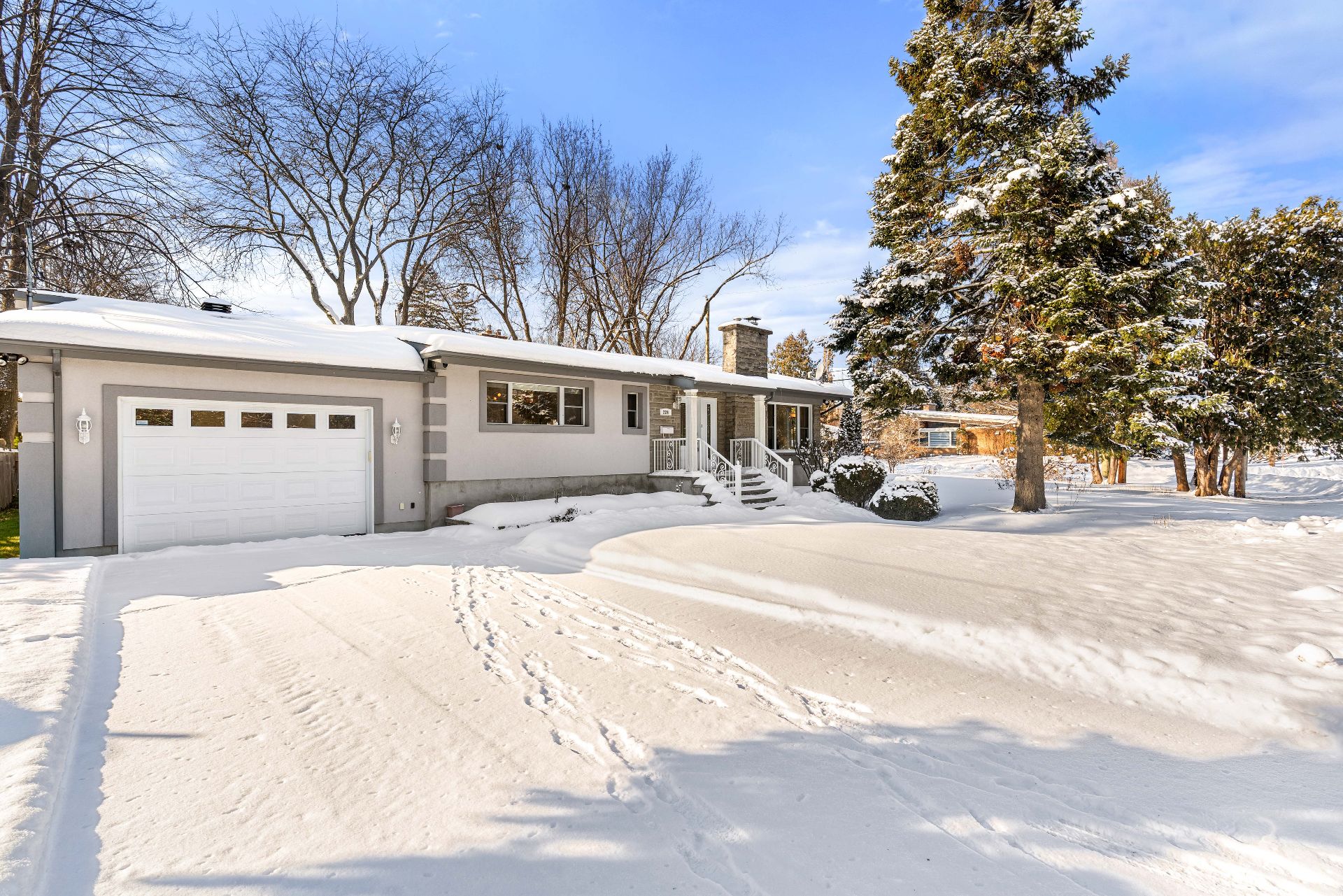 Situé sur une rue paisible dans un quartier recherché, ce bungalow à aire ouverte entièrement rénové offre confort et commodité. À proximité des transports en commun, des écoles et de la piscine communautaire, l'emplacement est idéal. Le RDC lumineux comprend une vaste cuisine avec comptoirs en granit ouverte sur la s. à manger et le salon, mis en valeur par de grandes fenêtres et un foyer au bois. 2 chambres offrent chacune une s. de bain attenante avec douche en verre, dont un espace supplémentaire idéal pour un bureau à domicile. Garage, deux entrées, cour privée et sous-sol rénové avec chambre et salle de bain complètent la propriété.