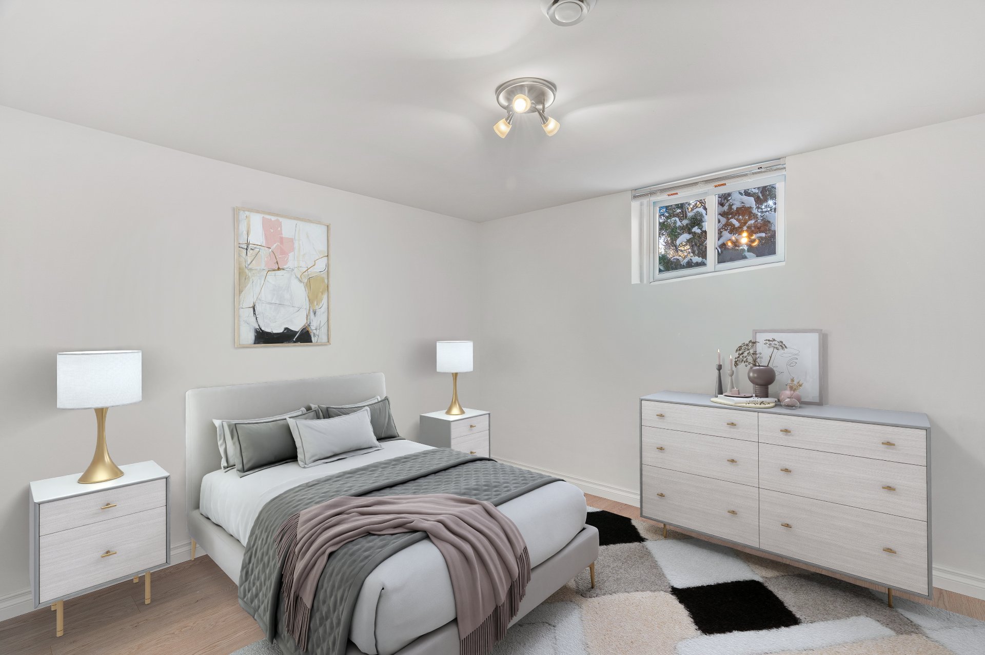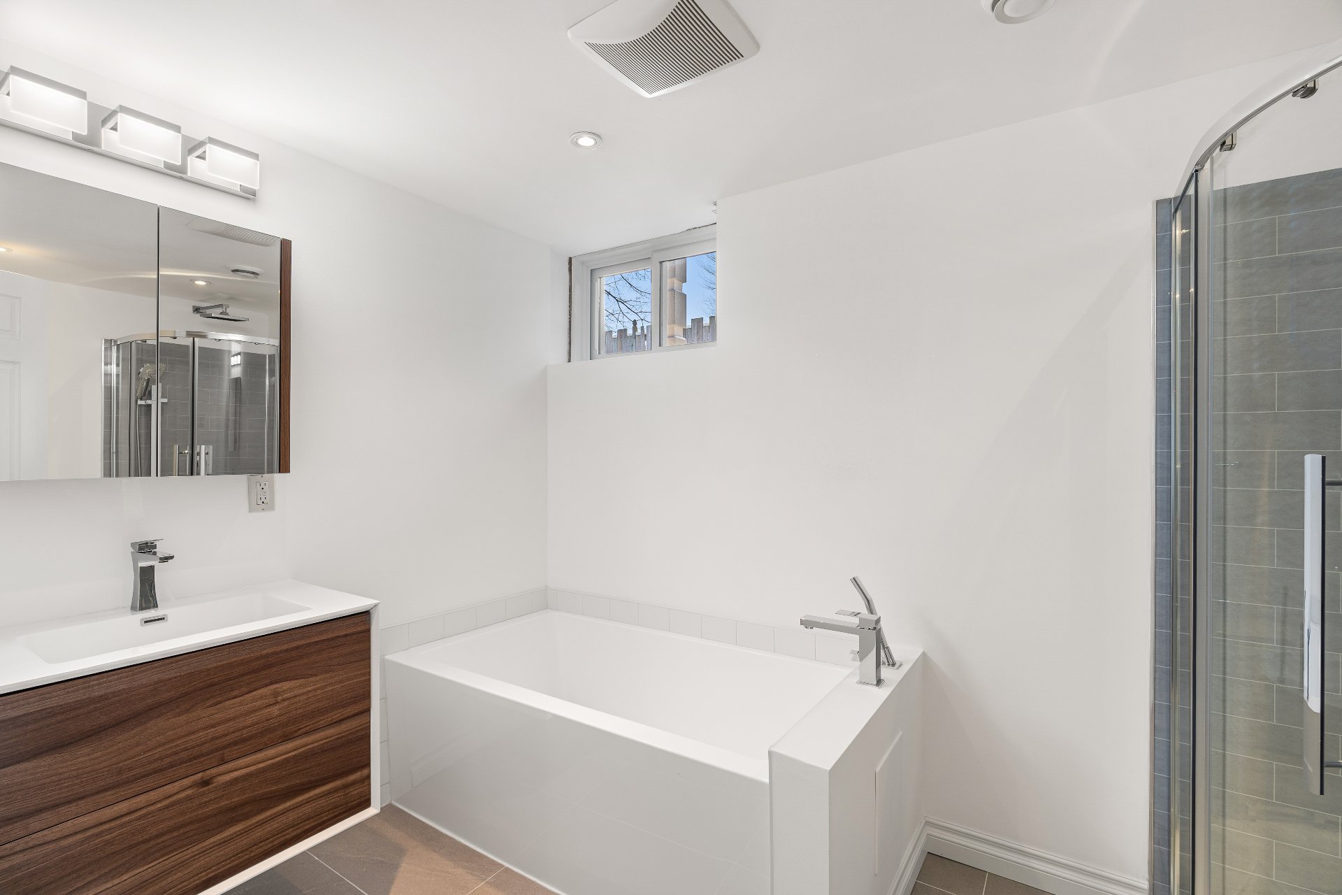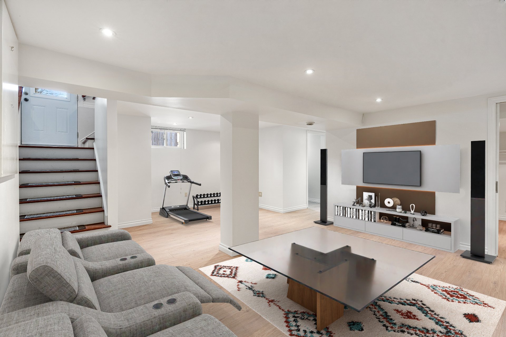 Le sous-sol récemment rénové offre un vaste salon familial,
