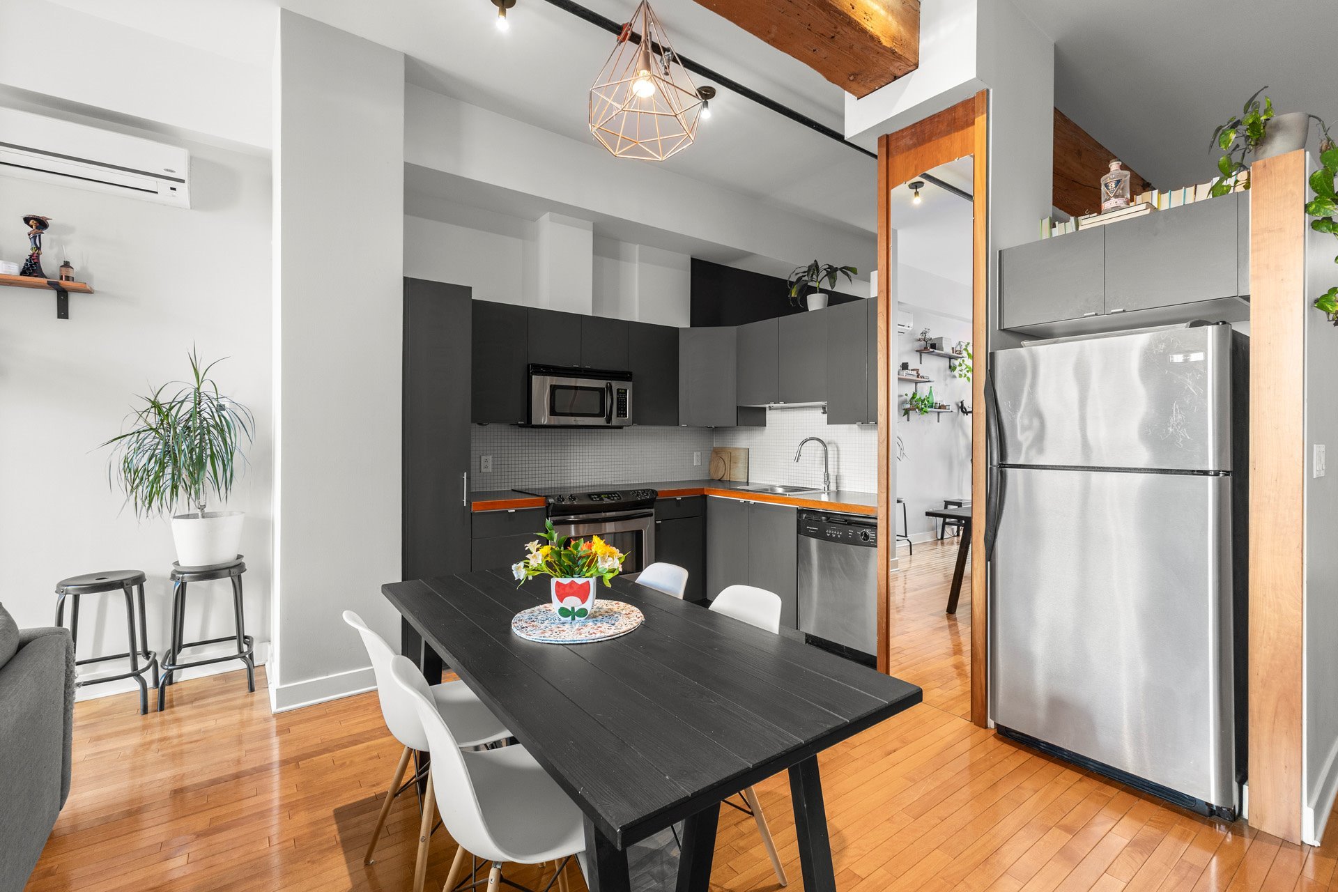 Situé au coeur du dynamique quartier Griffintown, ce superbe condo offre une vaste terrasse privée accessible du salon. Les finitions raffinées comprennent de hauts plafonds, des poutres apparentes, de grandes fenêtres et des planchers de bois franc. Profitez d'aménagements haut de gamme: un gym moderne, plusieurs terrasses sur le toit avec une vue superbe de la ville, des espaces BBQ, une piscine extérieure, sans oublier un chalet urbain sur le toit avec foyer et Wi-Fi. À quelques pas des boutiques, restaurants, cafés et quelques minutes du centre-ville, du Vieux-Port, du canal Lachine et le métro.