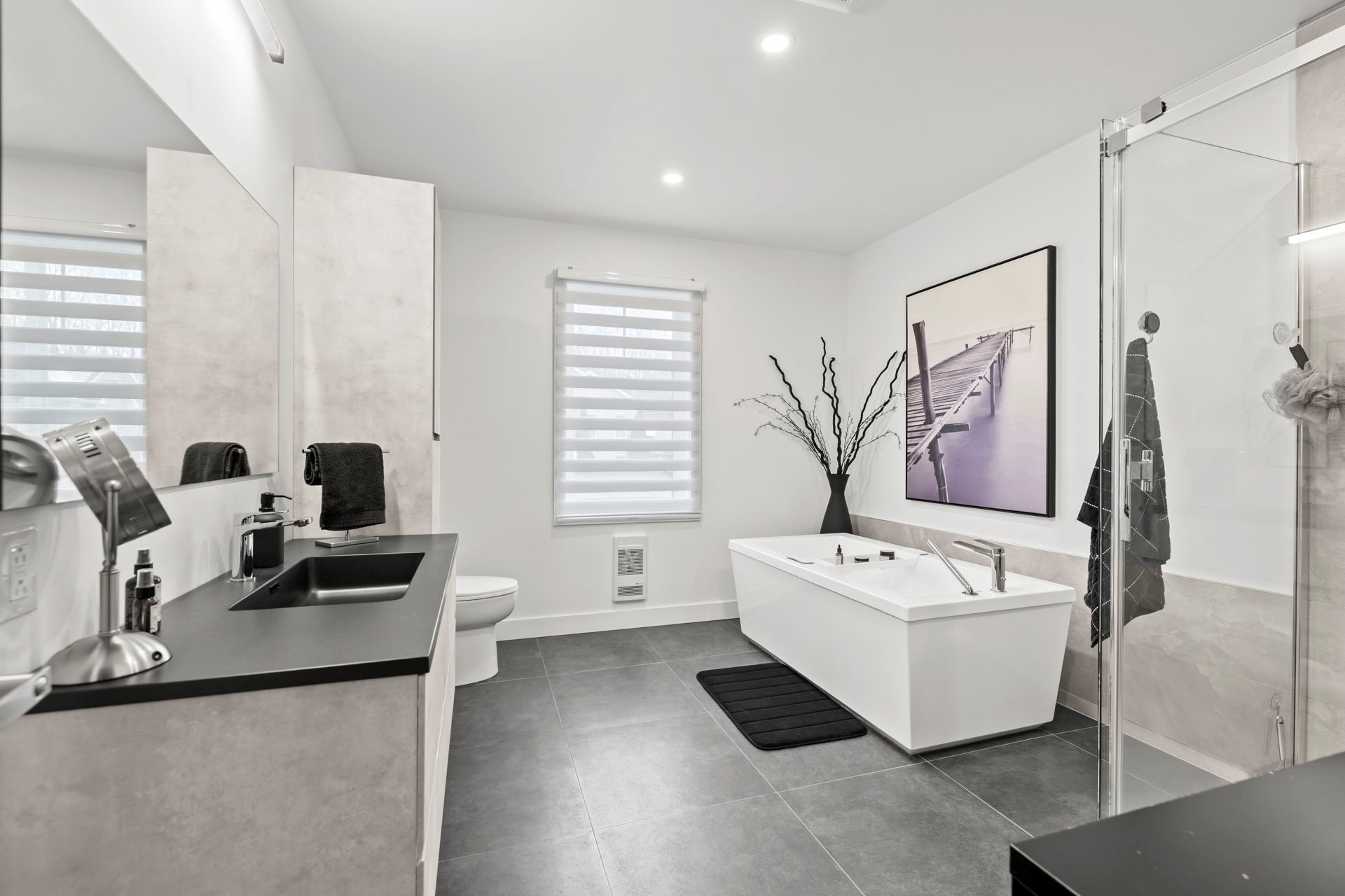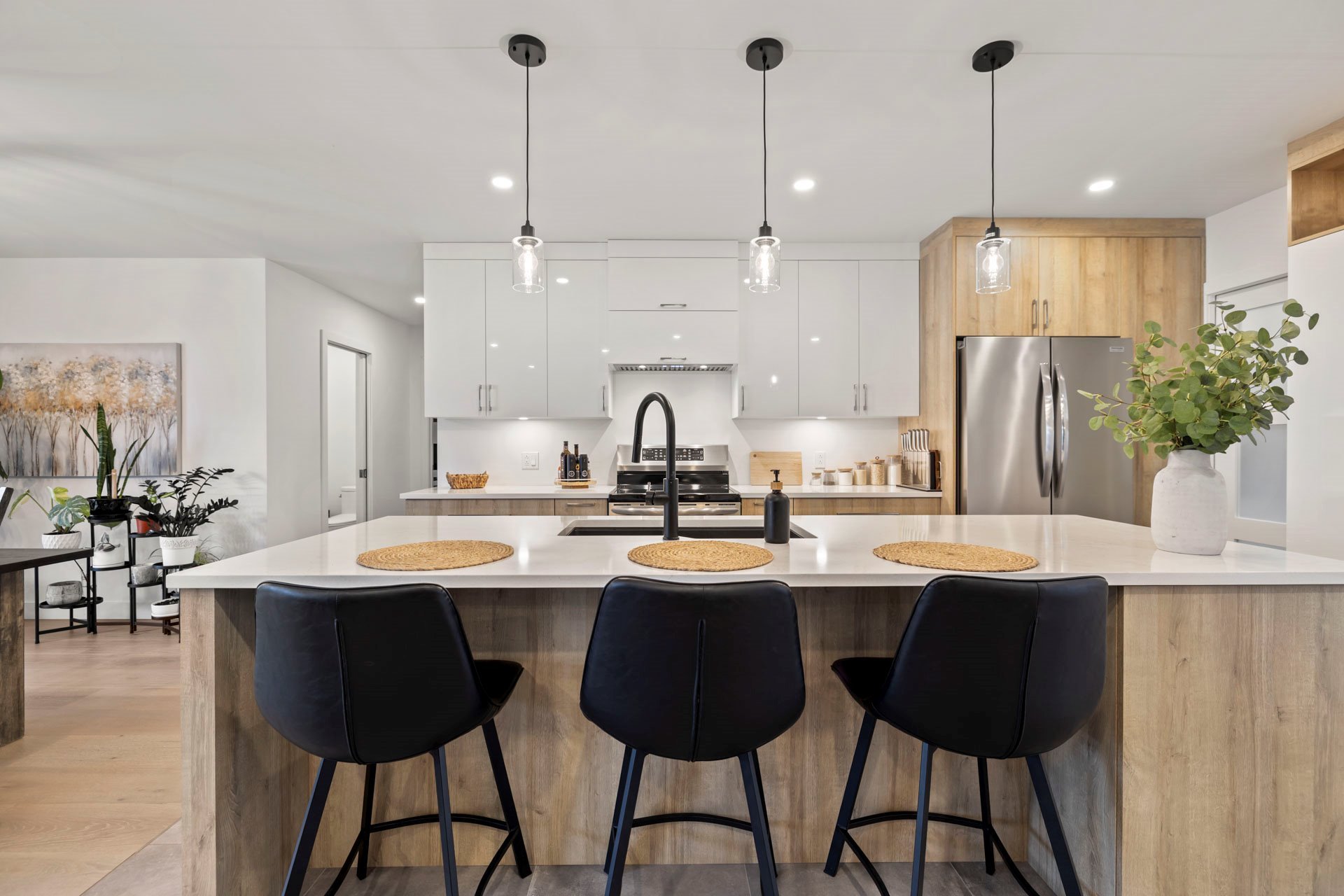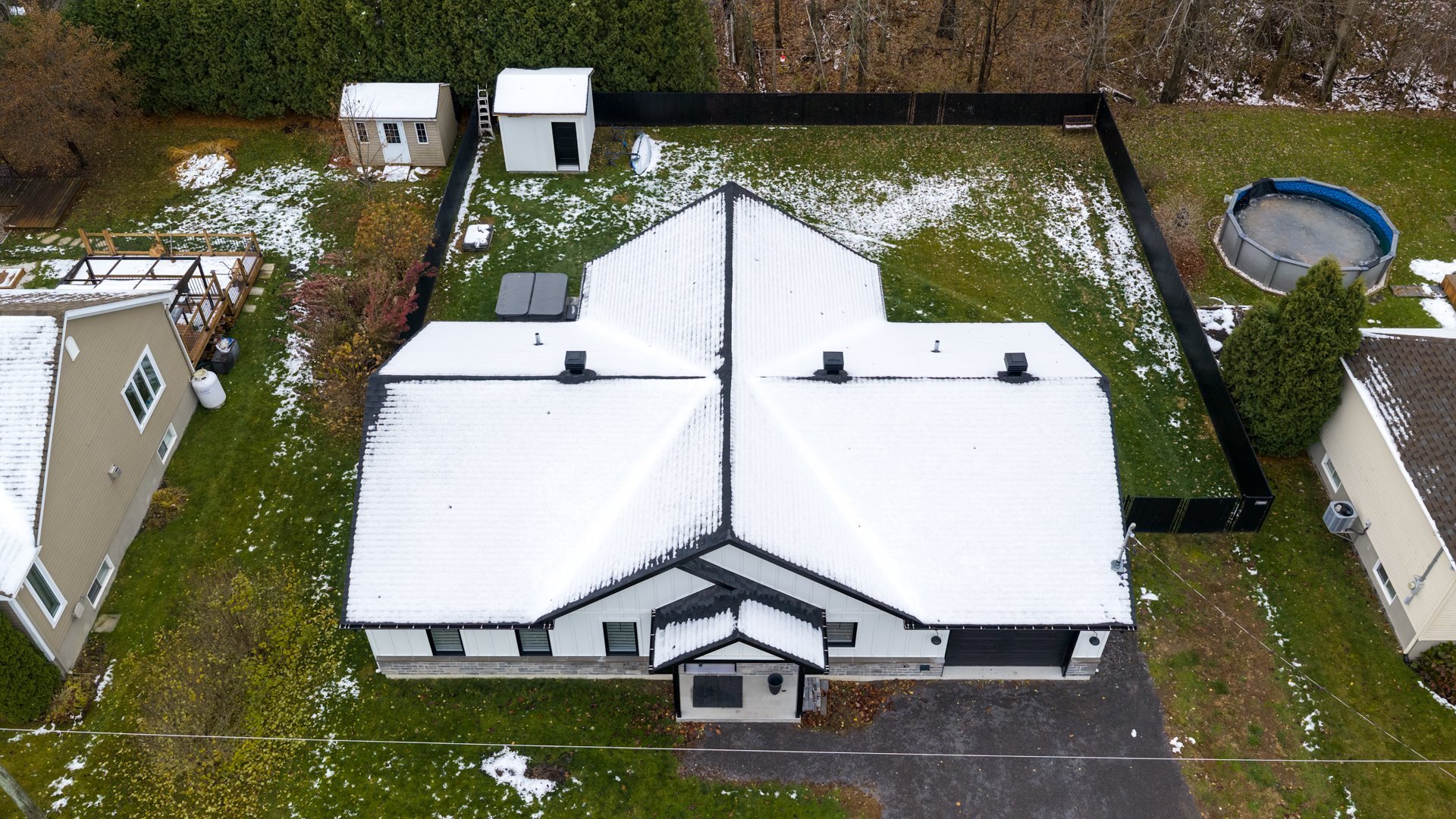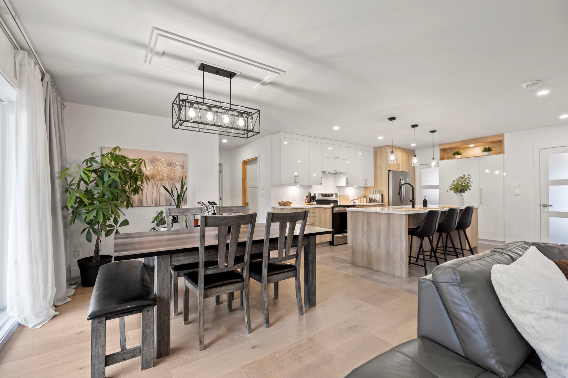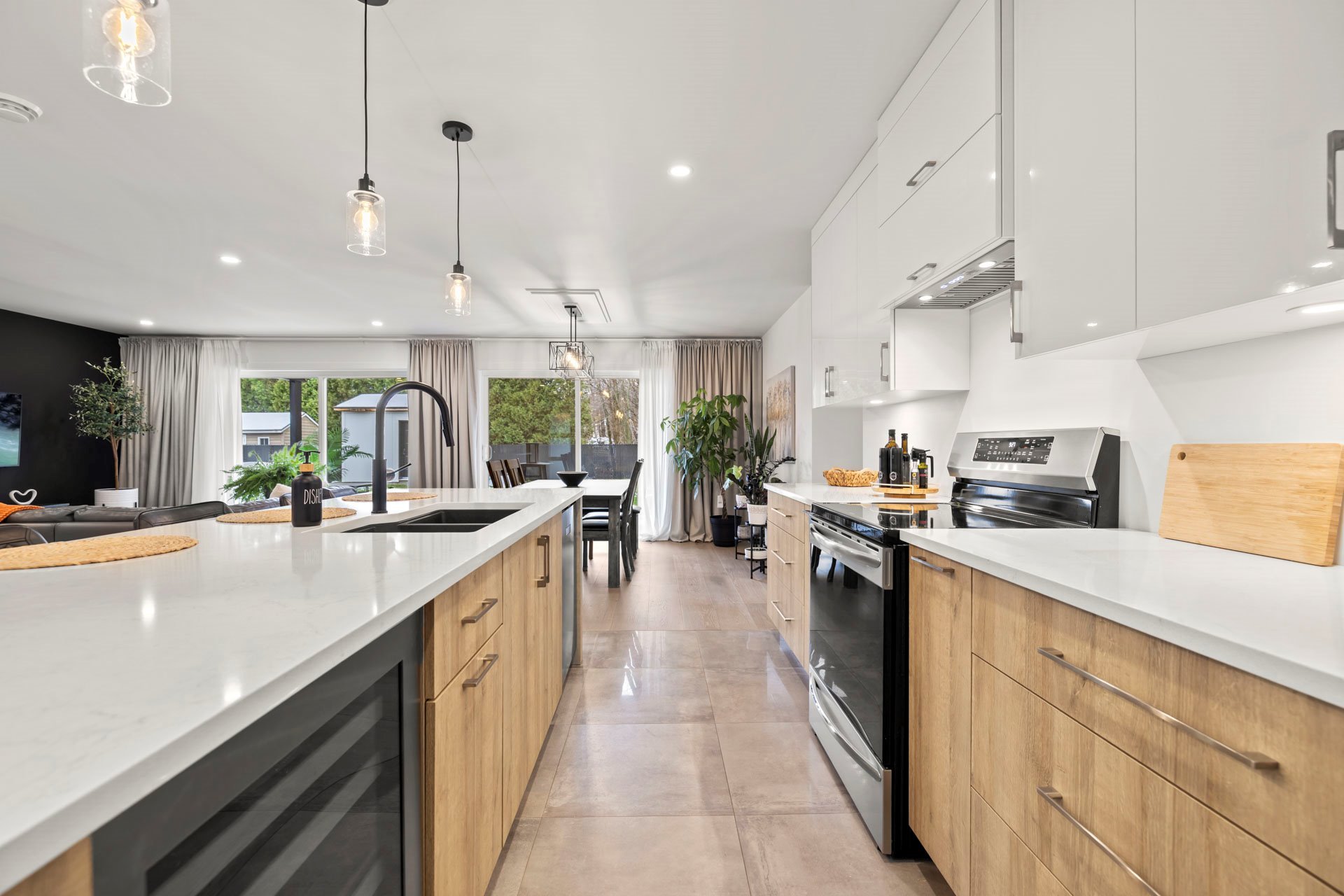 Inclus : Luminaires, stores, rideaux, pôles, lave-vaisselle, hotte de cuisinière, 3 bancs comptoir, thermopompe (murale), aspirateur central & accessoires, réservoir eau chaude, échangeur d'air, ouvre porte (industrielle) de garage électrique, refroidisseur à vin de 46 bouteilles à 2 zones, spas et remise.