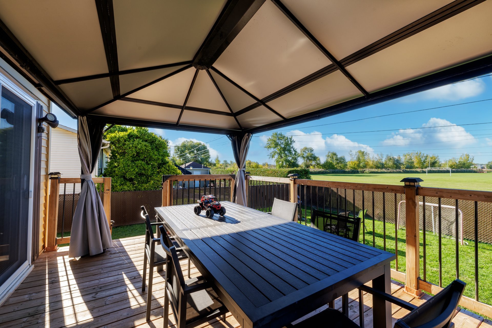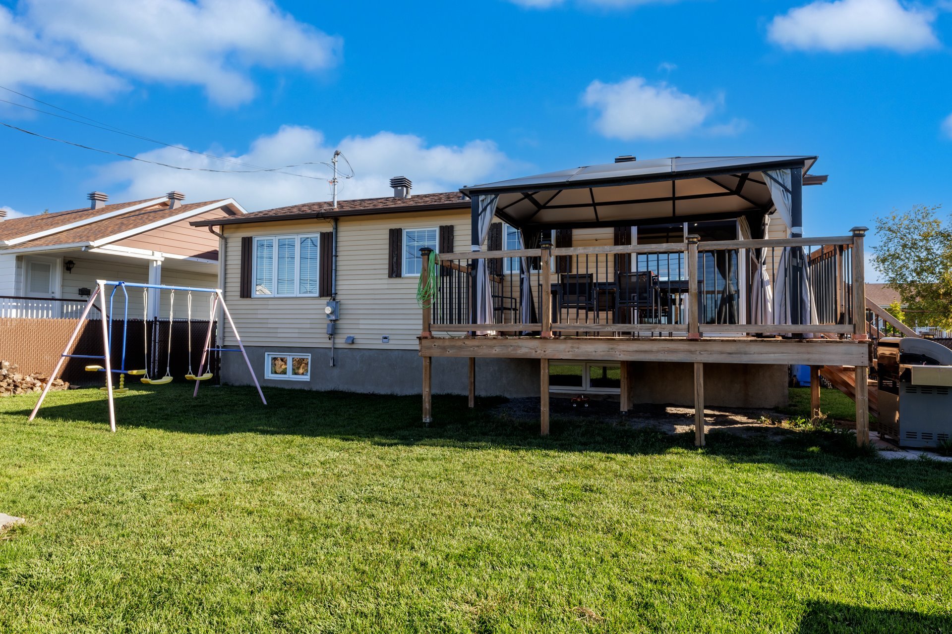 Inclus : Luminaires, stores, rideaux, pôles, hotte de cuisinière, thermopompe (Murale), gazebo, rangement garde-robe, réservoir eau chaude et remise 2019.