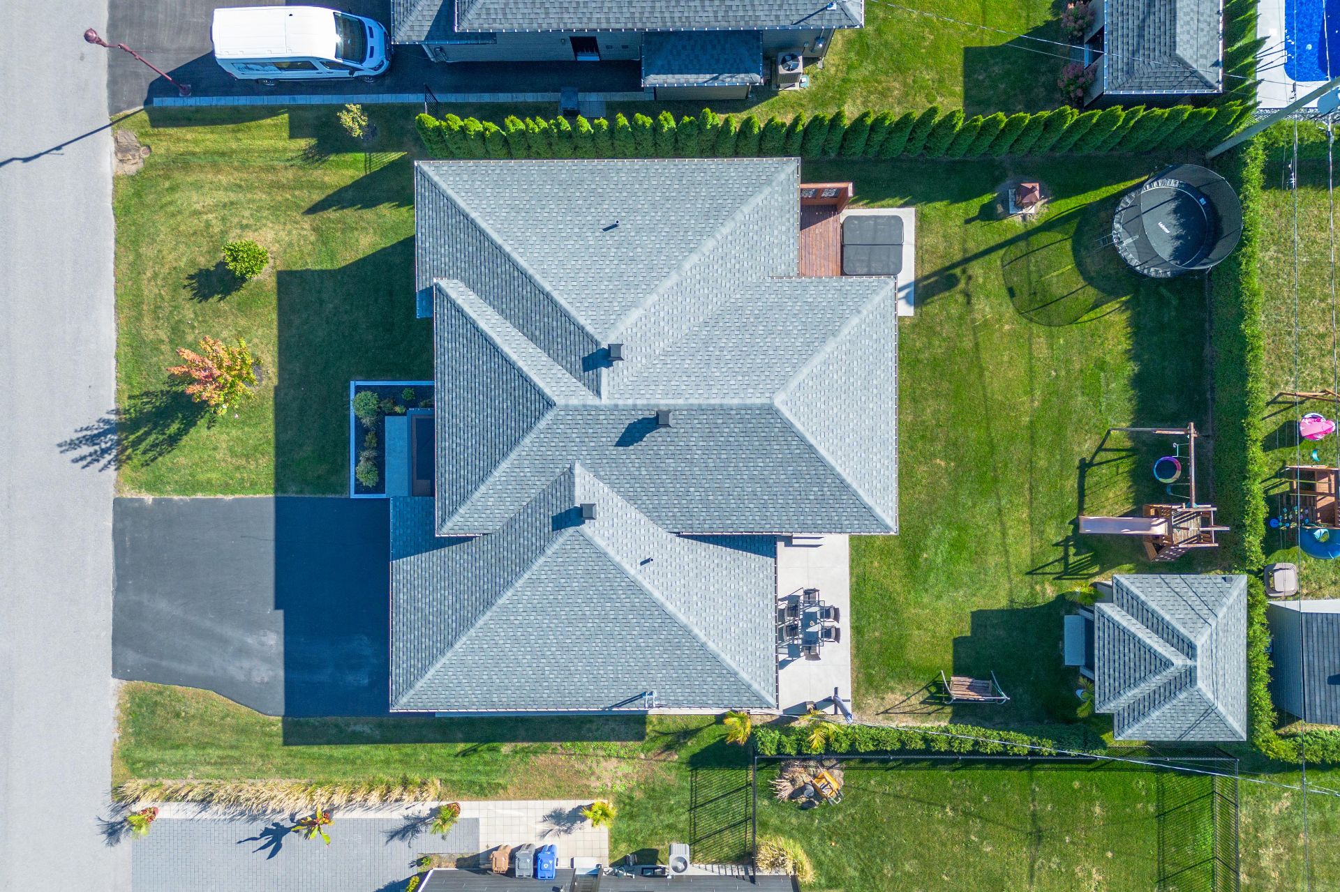 Exclusions : spa, wall-mounted televisions and mounts, appliances, outdoor umbrella, wooden bar in the basement, workbench in the garage