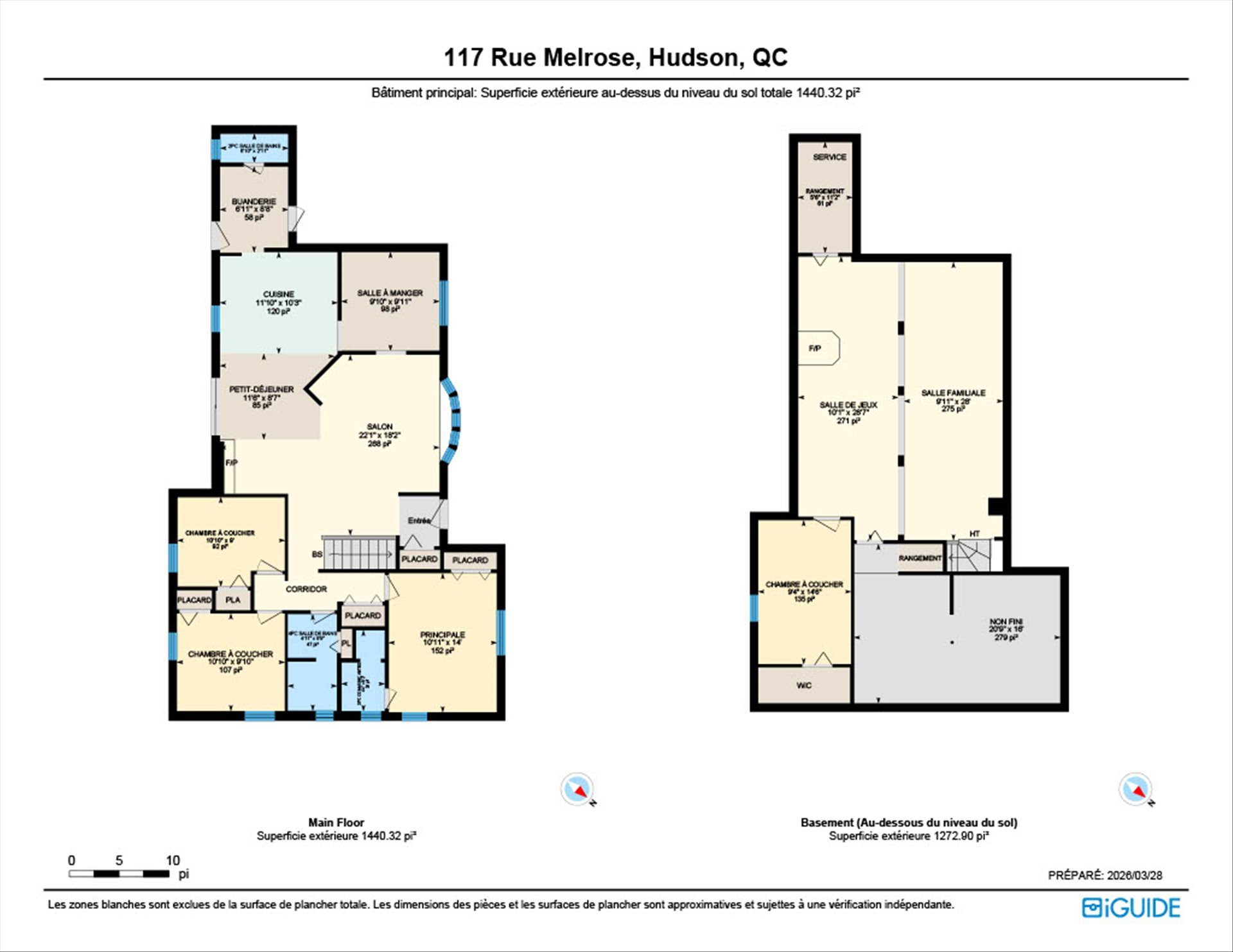 | Family room | 9.11 x 28 P | Basement | Carpet |