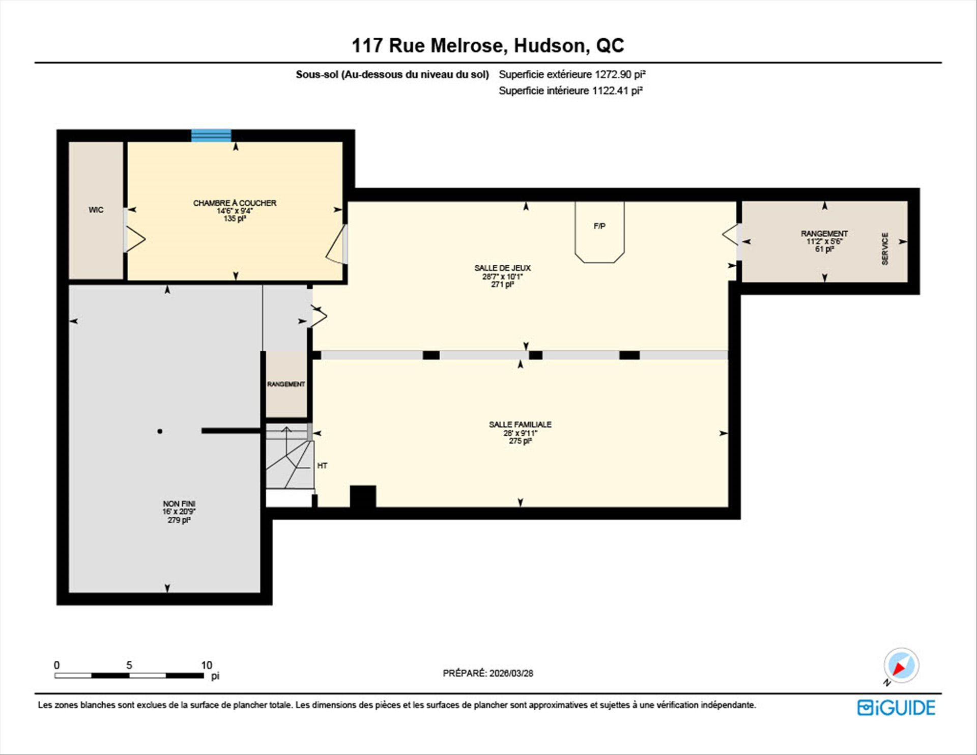 | Playroom | 10.1 x 28.7 P | Basement | Carpet |