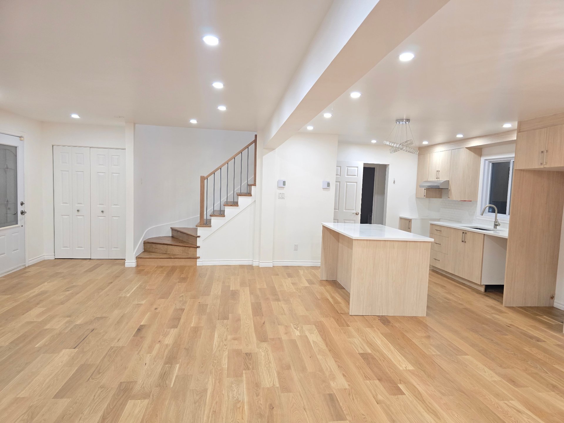 Located in a peaceful area of Kirkland South East, this Canadiana-style home offers 4 spacious bedrooms, including an ensuite and a second full bathroom upstairs. The ground floor was renovated in 2022 to create an open-concept living, dining, and kitchen area with a large island and quartz countertops. The basement, renovated in 2024, includes a family room, another bedroom, and storage. In August 2025, after the tenant's departure, the house was upgraded with new hardwood floors on the ground floor, and hardwood stairs, fresh paint, and a backflow valve in the basement.