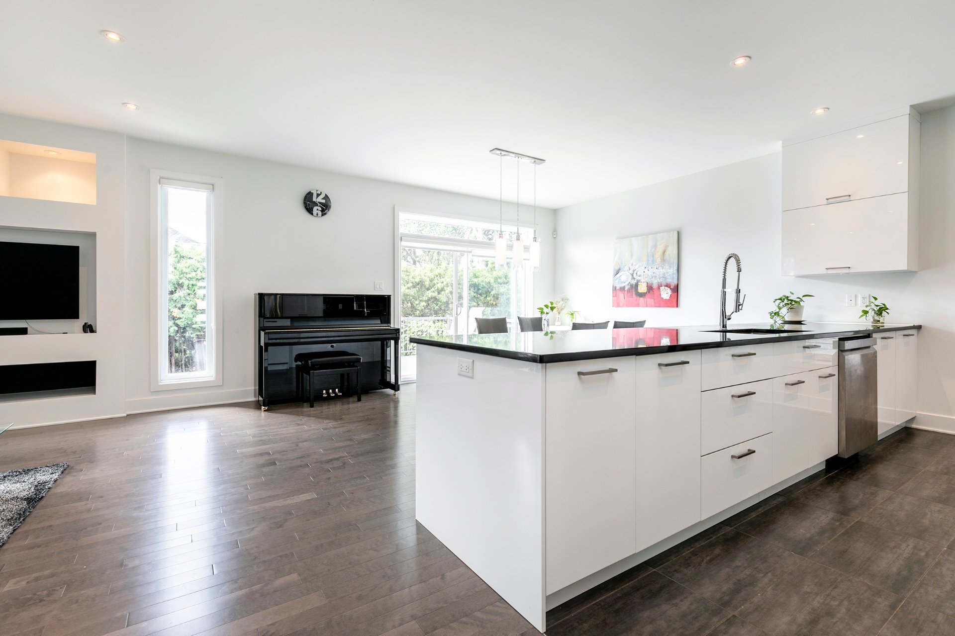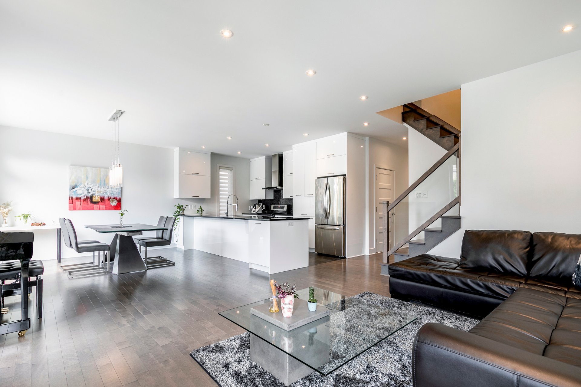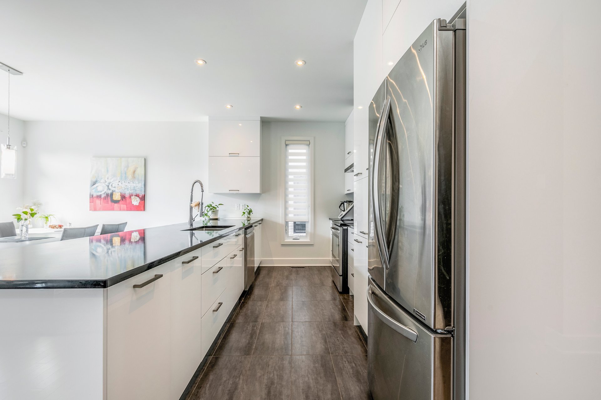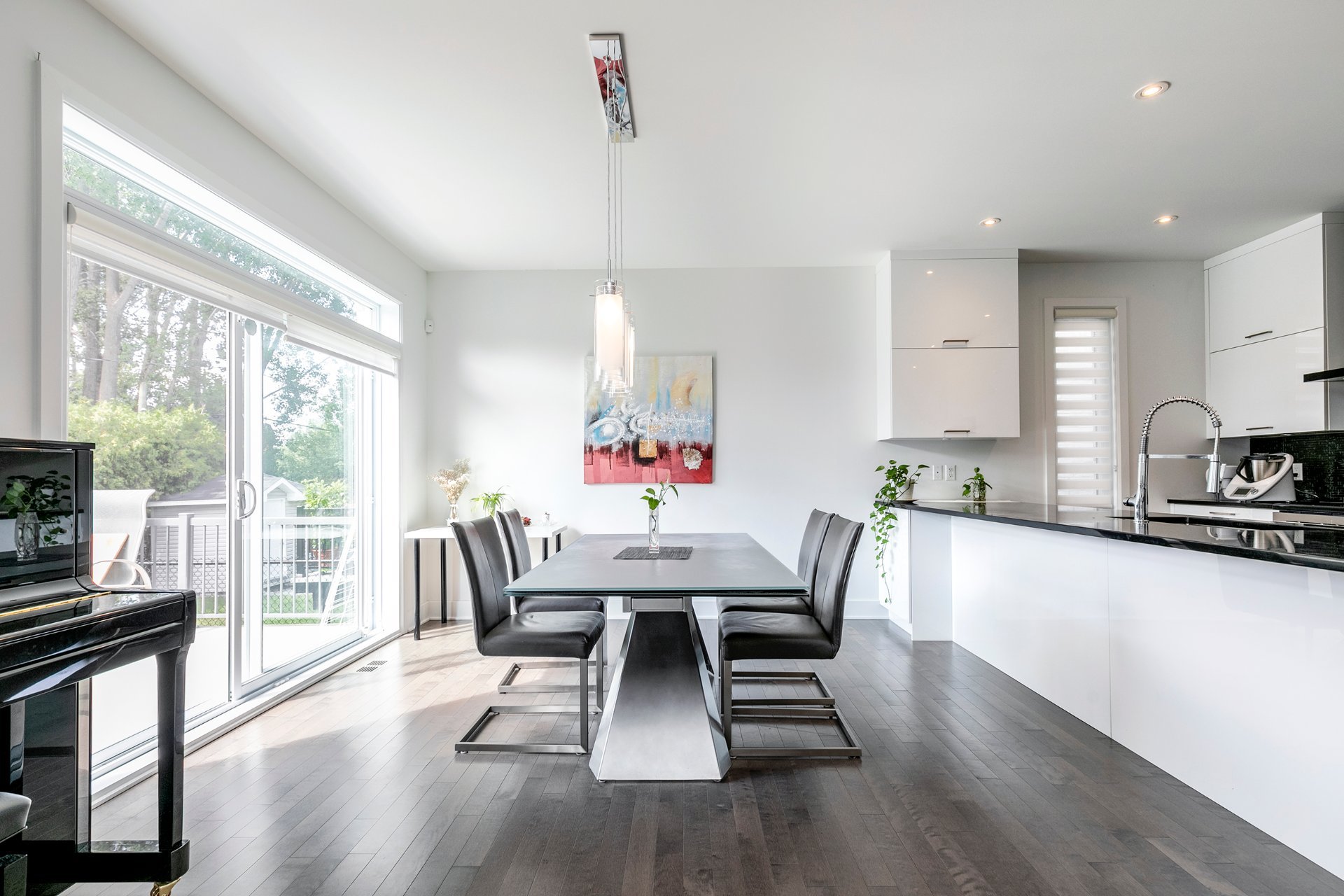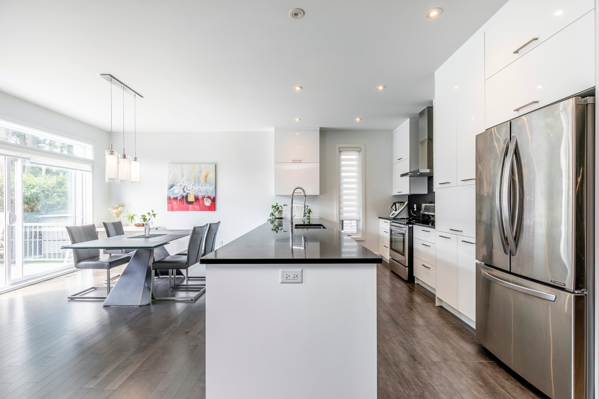 Inclusions : stove, fridge, washer, dryer, central heat pump with air conditioner, air exchanger, garage door opener, alarm system, central vacuum.