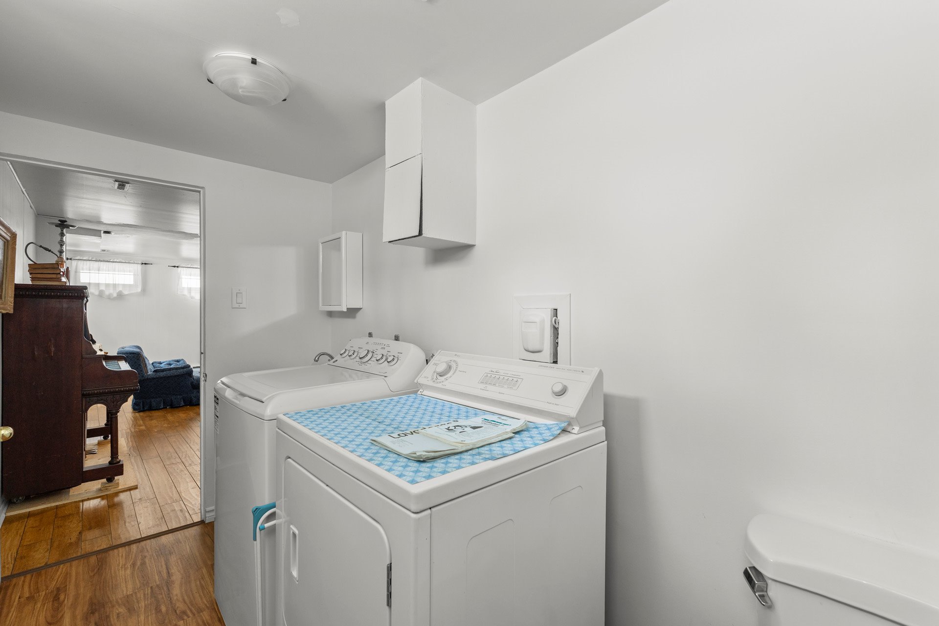 -Powder room with integrated laundry area