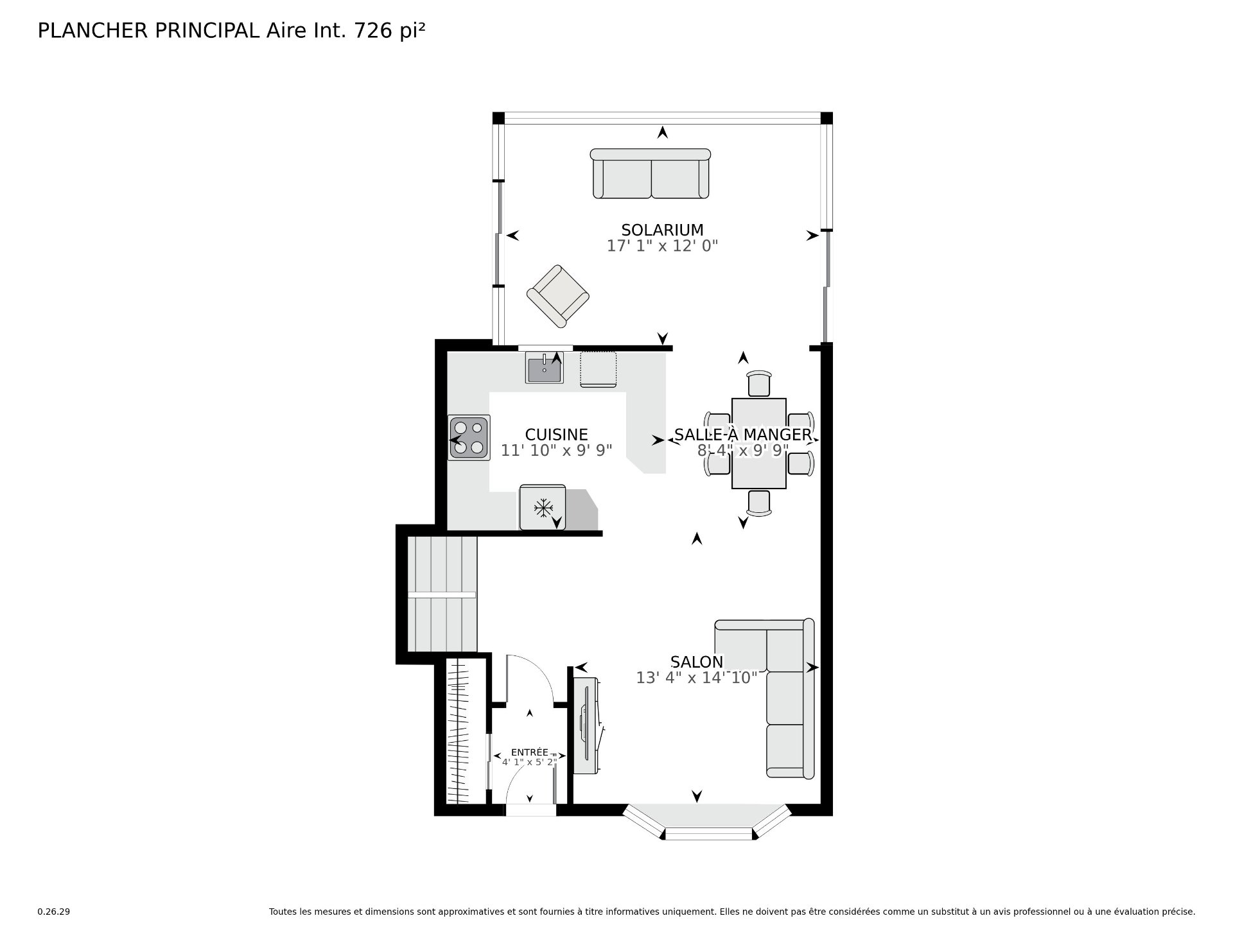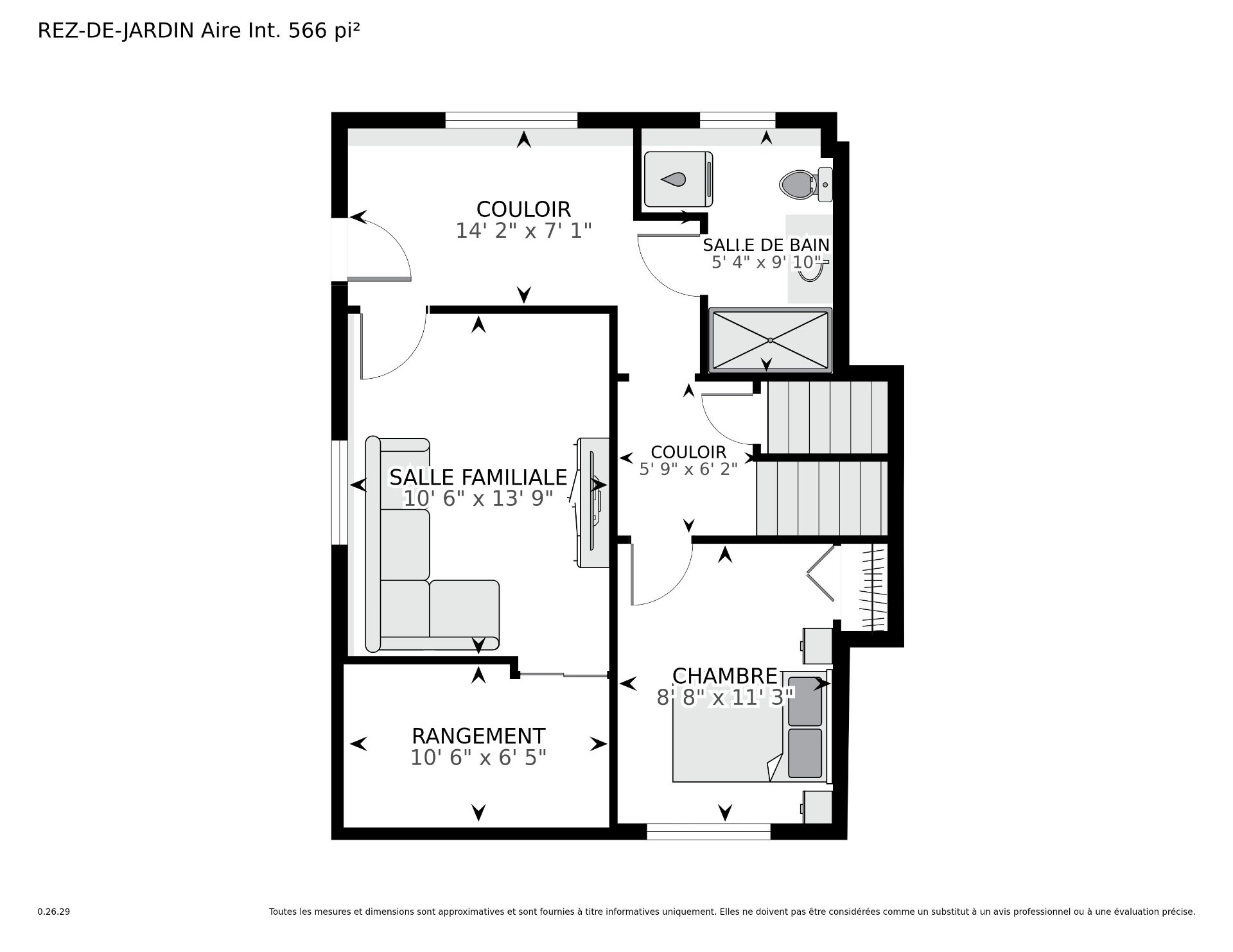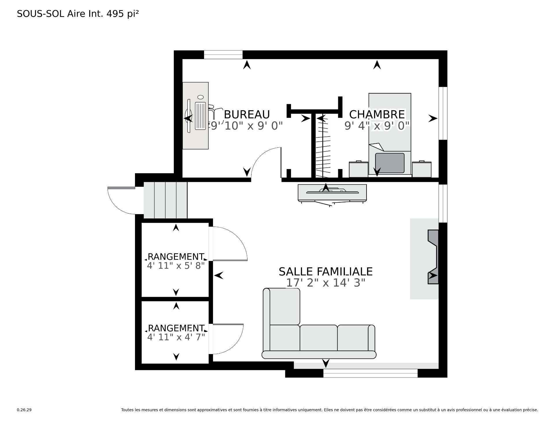 | Family room | 17.2 x 14.3 P | Basement | Tiles |