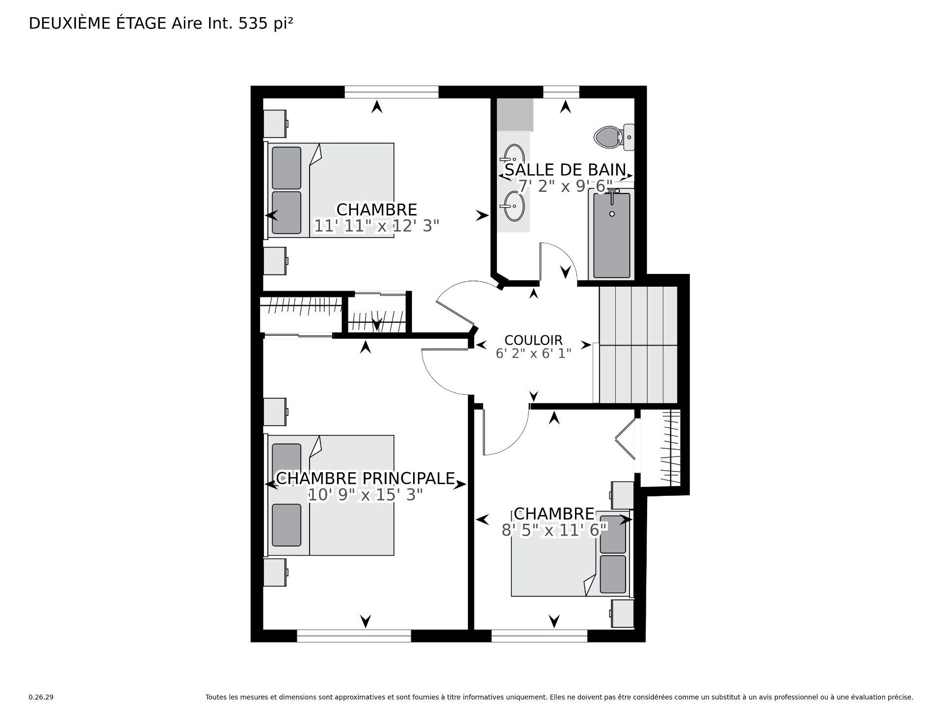 | Primary bedroom | 15.3 x 10.9 P | 2nd Floor | Parquetry |