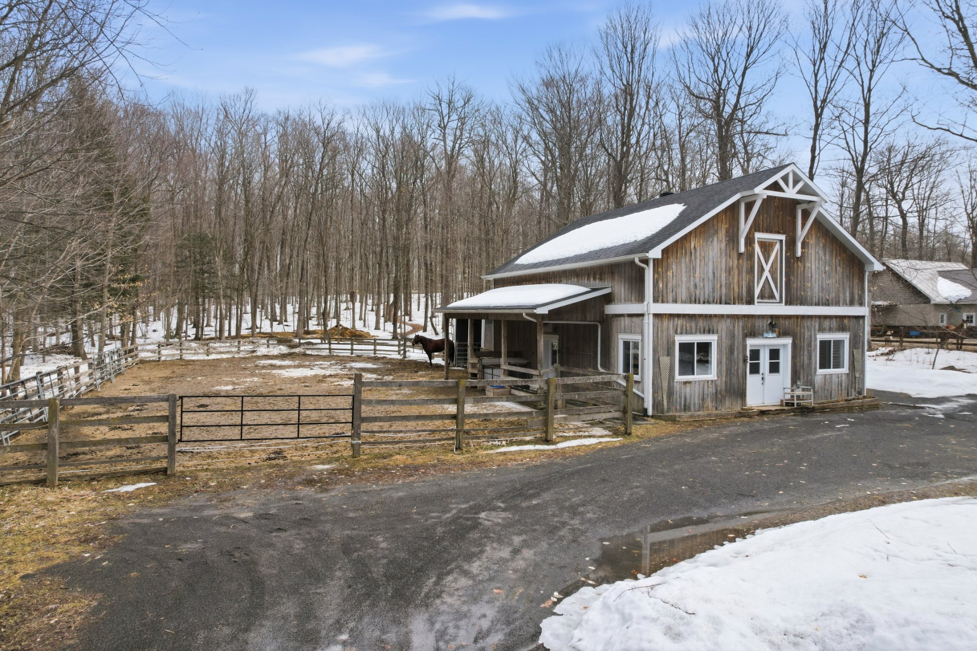 Amazing property in St-Lazare! Treat yourself to a truly unique lifestyle where modern comfort and equestrian passion blend seamlessly. Ideally located directly on the prestigious equestrian trails, this elegant 2014 farmhouse-style home is sure to impress even the most discerning buyers. Filled with natural light and refined finishes, it offers 3 bedrooms, 2 full bathrooms, heated floors, a garage powder room, heat pump, and air exchanger. The outstanding 112,832 sq. ft. lot includes a fully drained paddock for animals. A true haven of peace combining nature, space, and freedom--just minutes from all services.