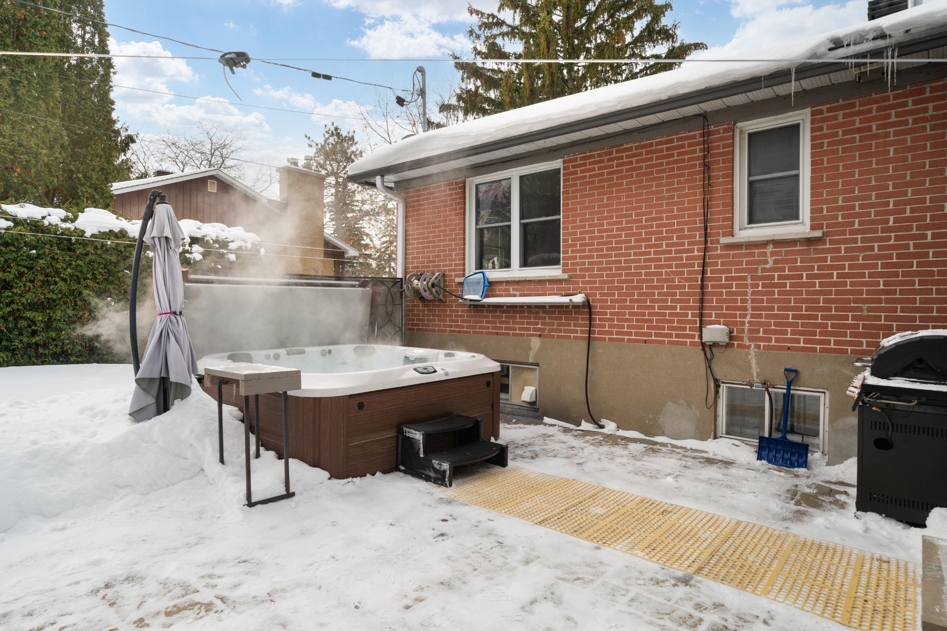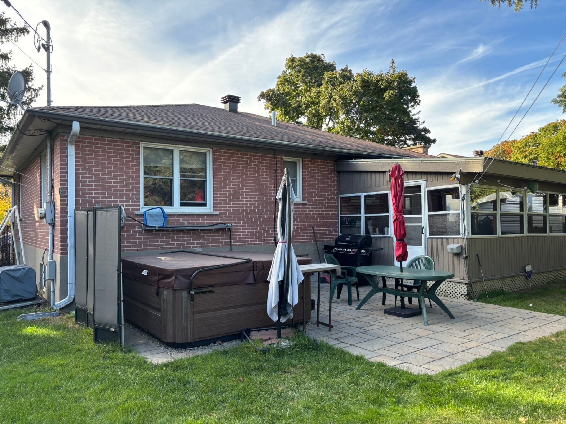 Inclusions : fridge, stove, washer, dryer, dishwasher, hot tub, curtains & rods, light fixtures, ceiling fan, main bathroom medicine cabinet/mirror, alarm systems hardware (not connected)