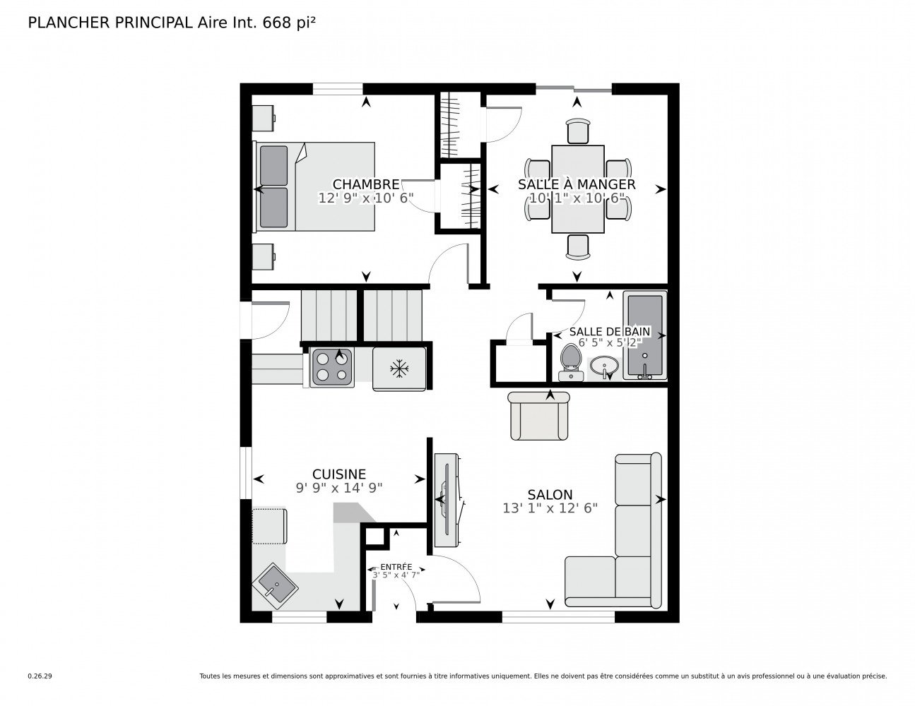 | Laundry room | 15.6 x 6.10 P | Basement | Linoleum |