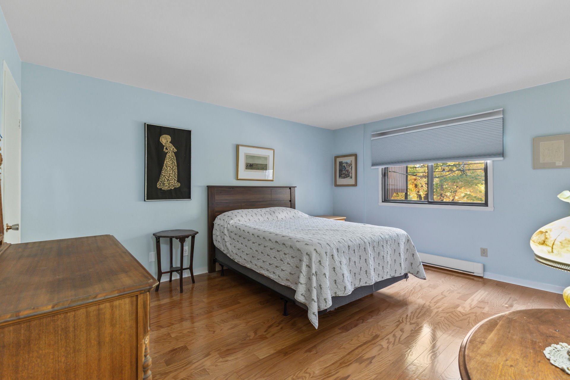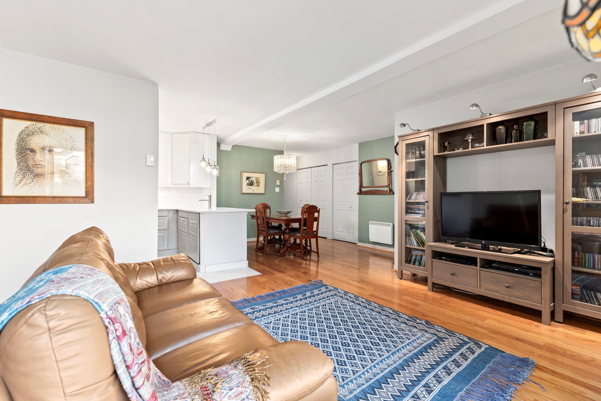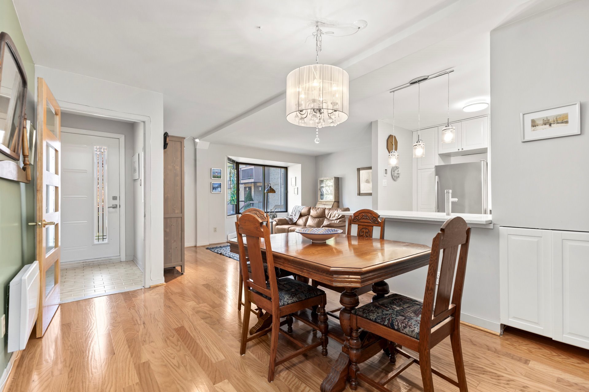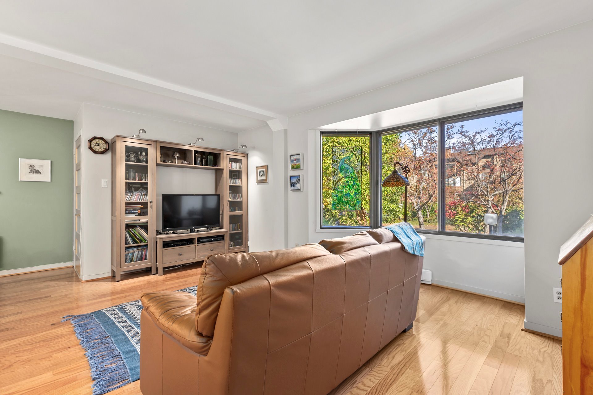 Exclusions : Stained glass in the living room window, mirrors in the hallways, light fixtures in the dining room and bedroom, and a wooden wall-mounted coat rack at the entrance
