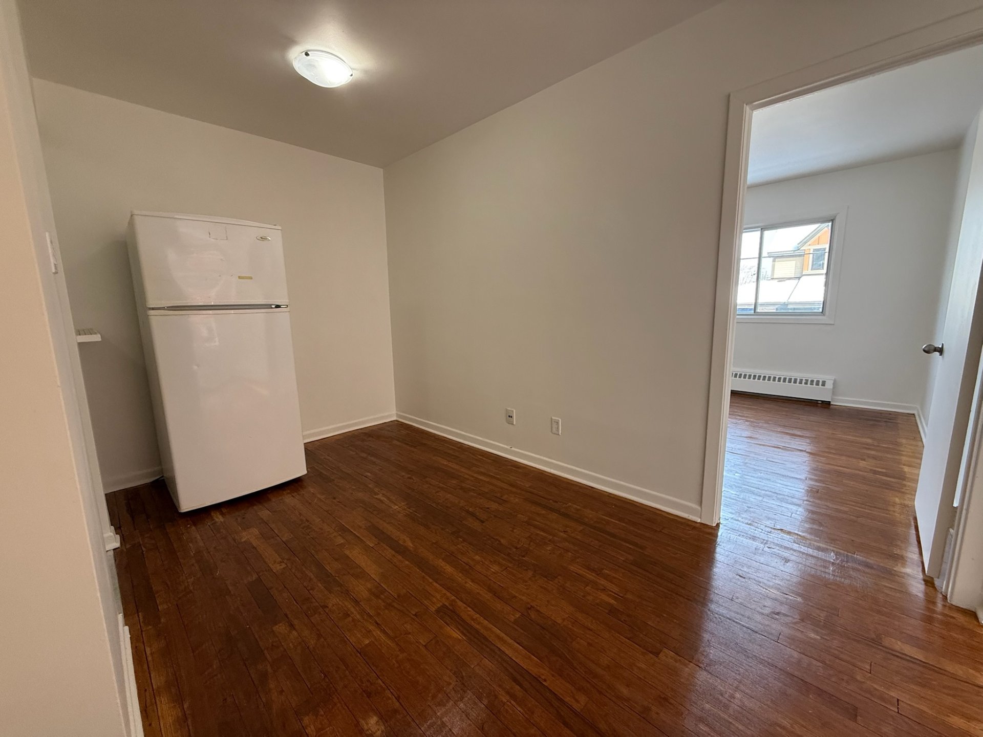 1-bedroom, 1-bathroom ground-floor apartment located on a quiet residential street in beautiful Old Dorval. The unit features hardwood floors throughout, large windows bringing in abundant natural light, and a functional layout offering comfortable living space. Spacious bedroom with generous closet space and ample storage. No appliances included. Enjoy a peaceful, walkable neighborhood close to parks, the lakeshore, shops, and public transit. Heating included.