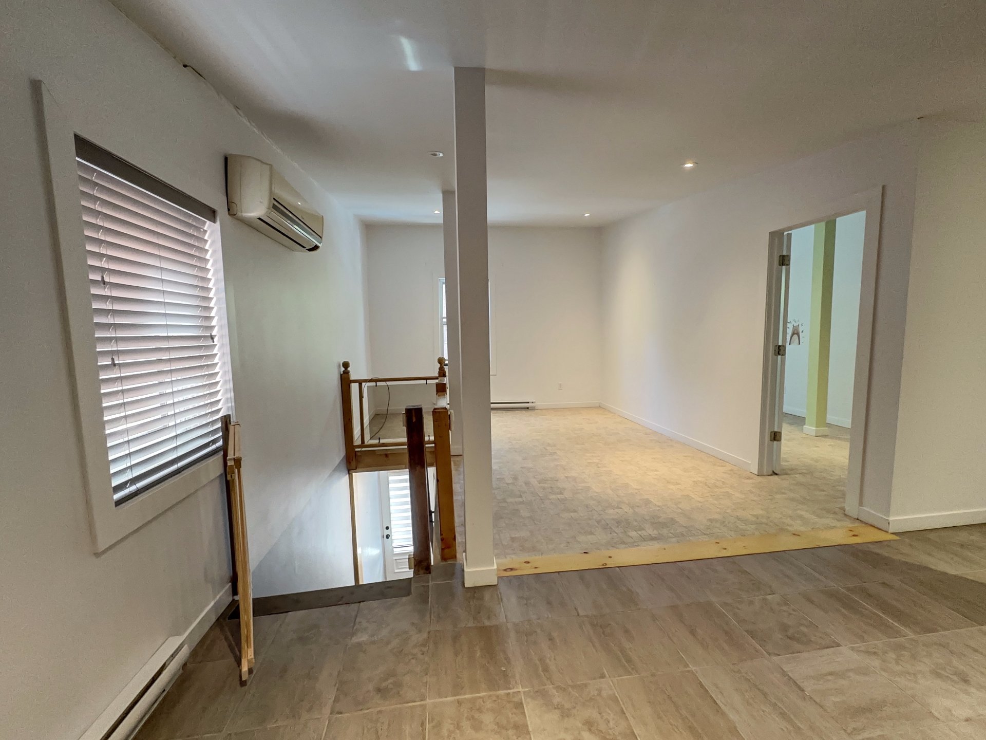 a) Completely renovated bedroom: windows, walls, floor,