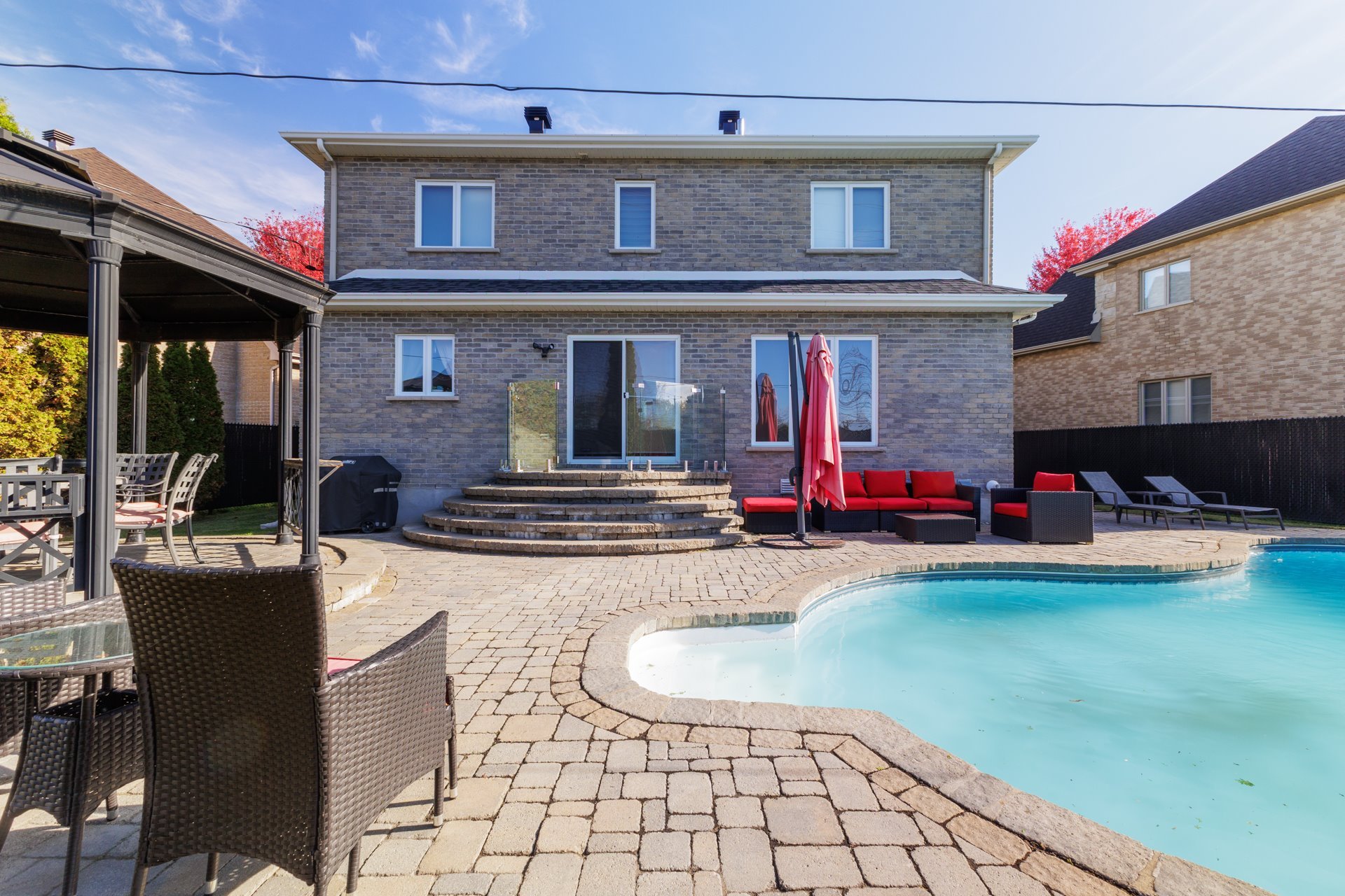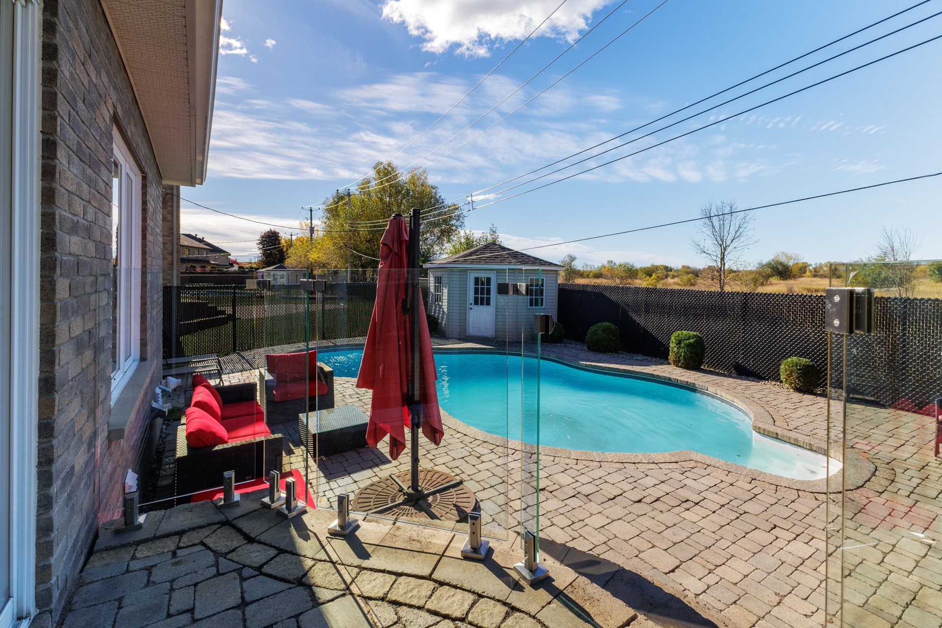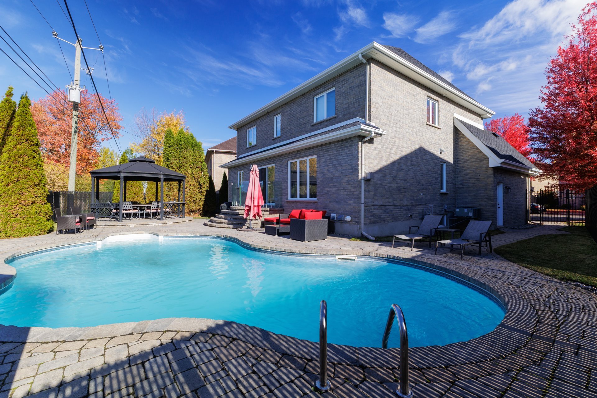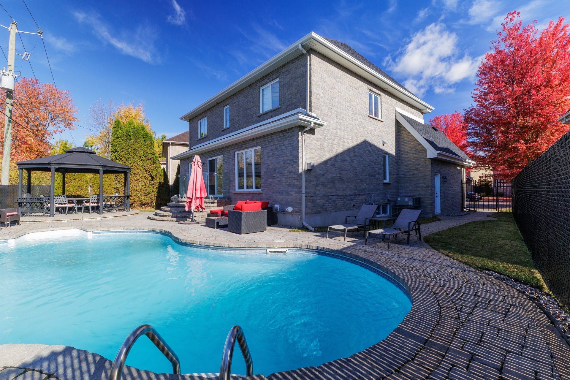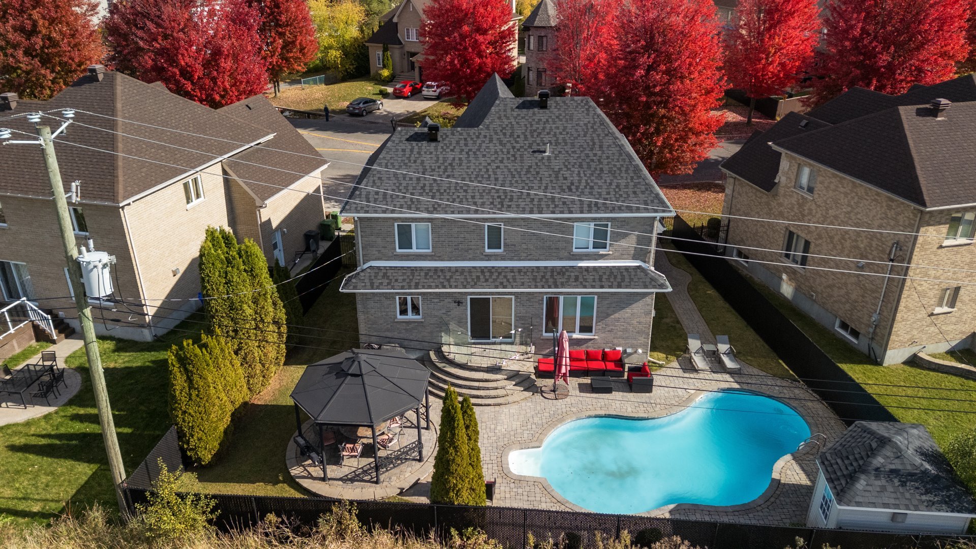 Inclusions : Gas cook-top,Hood-fan, Fridge, Dishwasher, Microwave, Built-in-wall oven, Garage door openors(2), alarm system(not connected), pool w/accessories and gas heater, cabanon, central-vac w/accessories.
