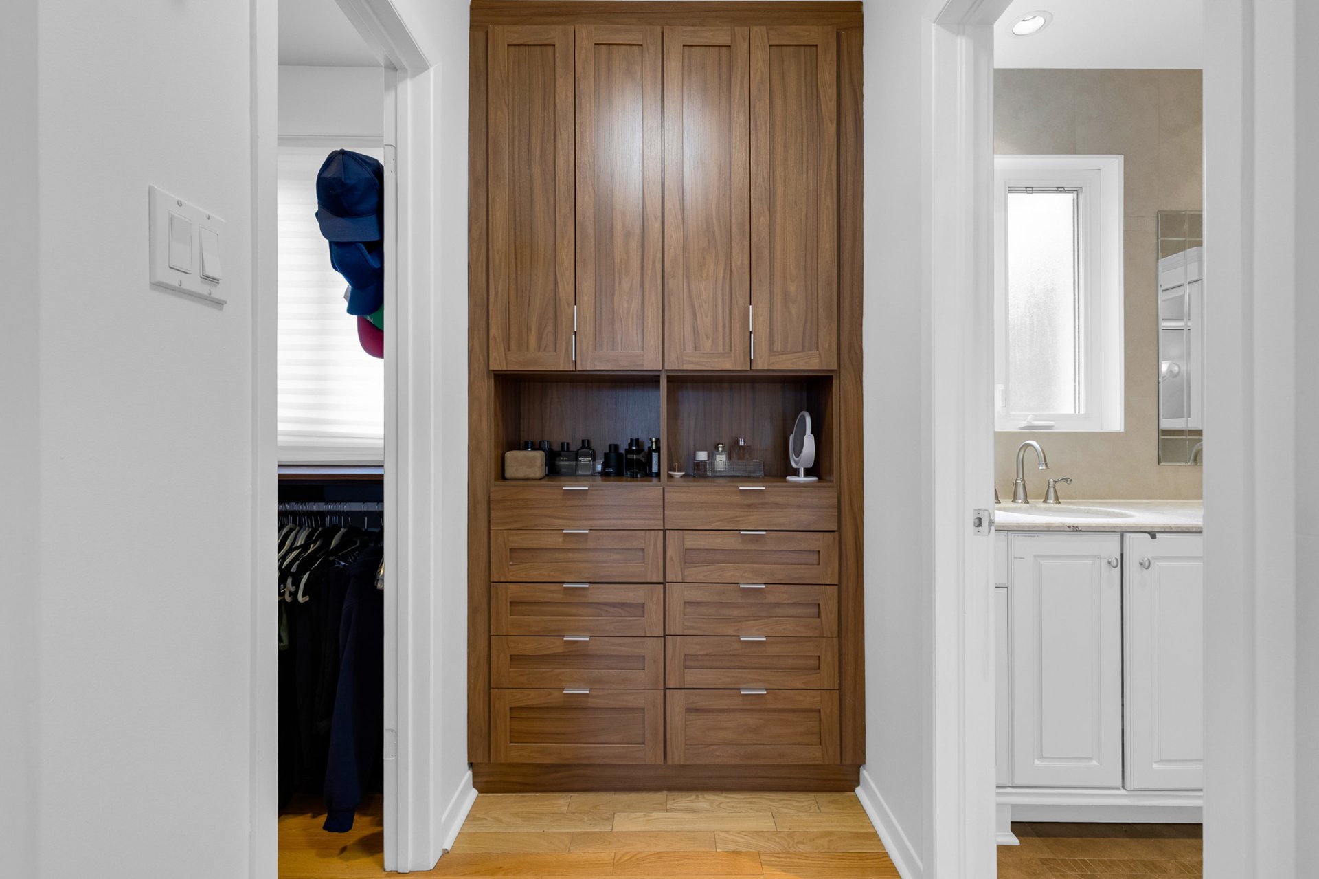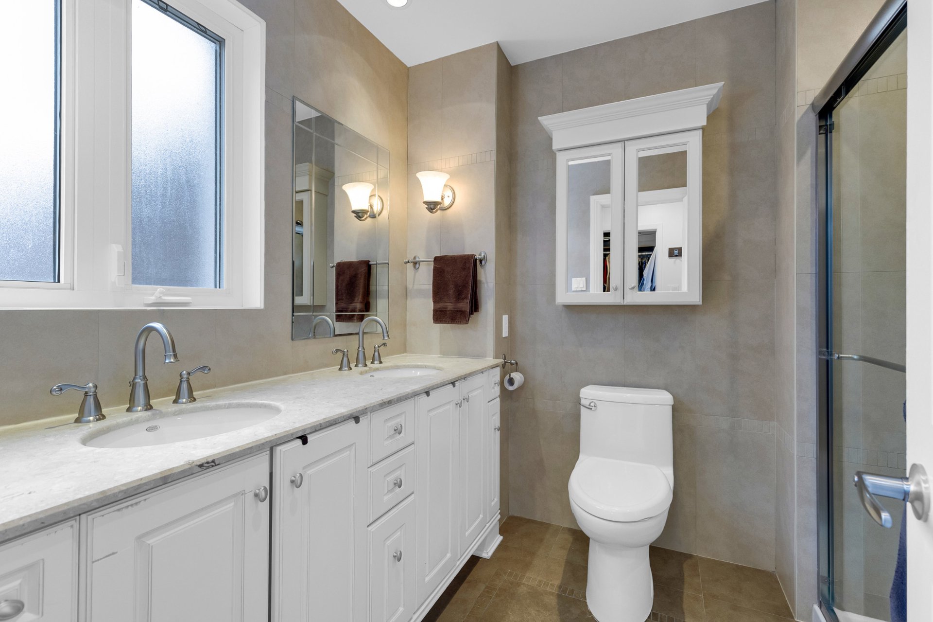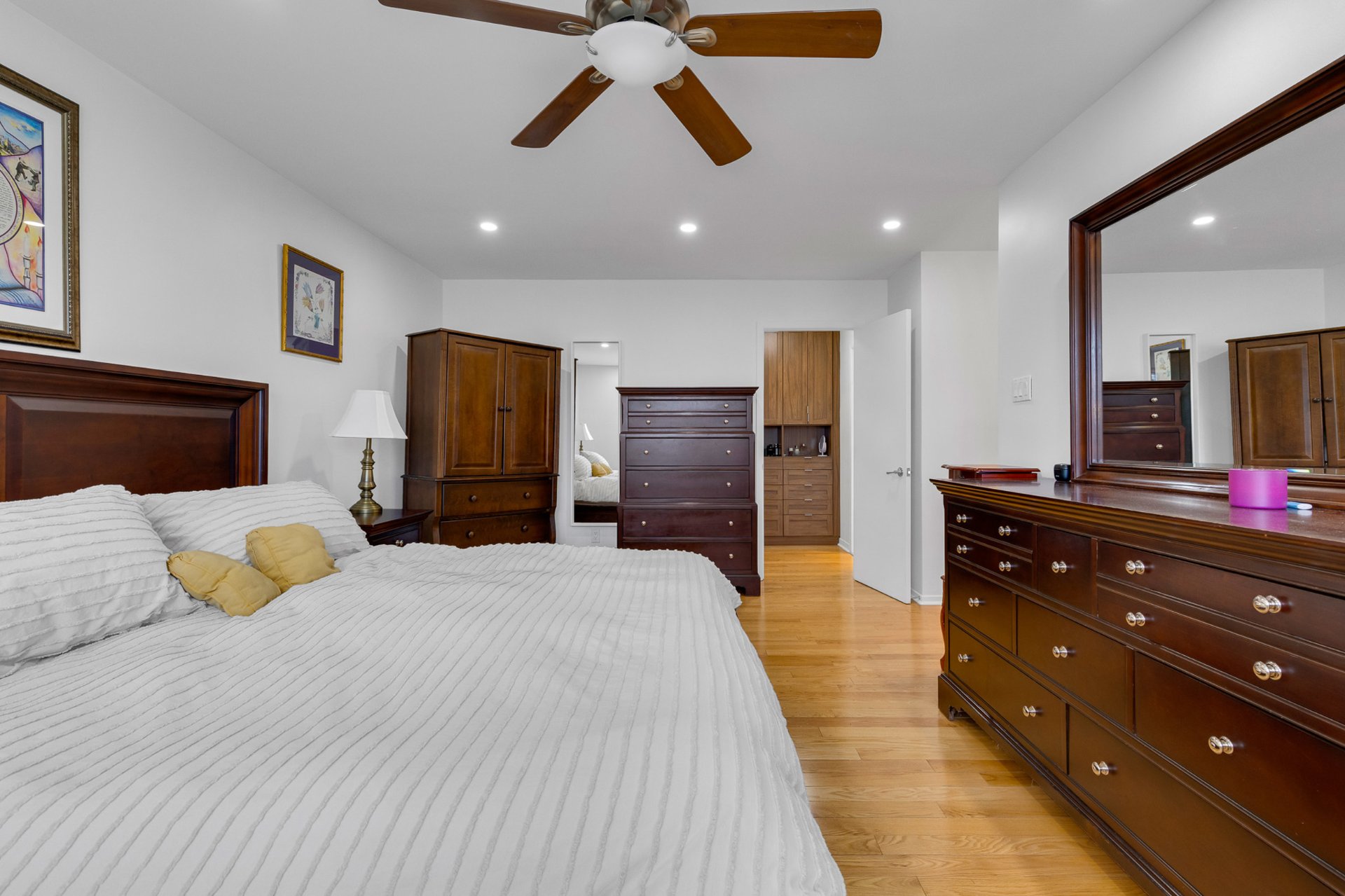 modernized ensuite and walk-in California Closet, three