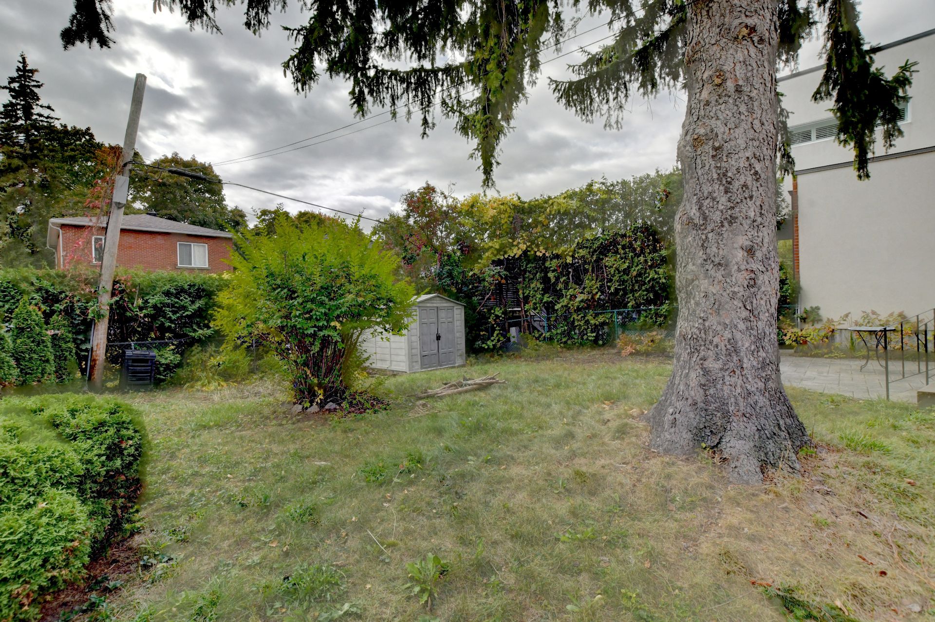 Landscaping Fenced, Land / Yard lined with hedges