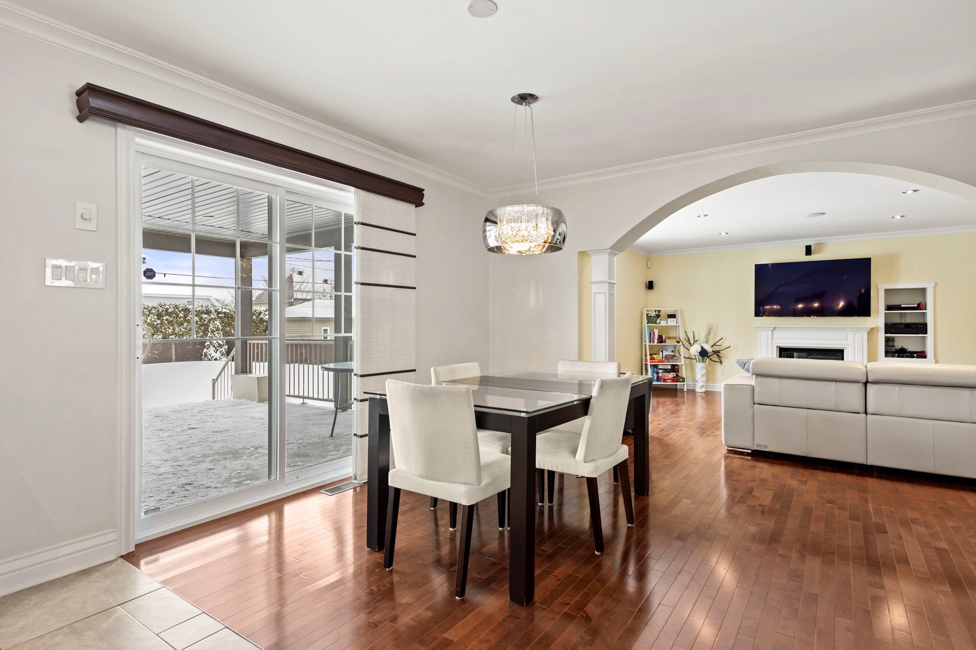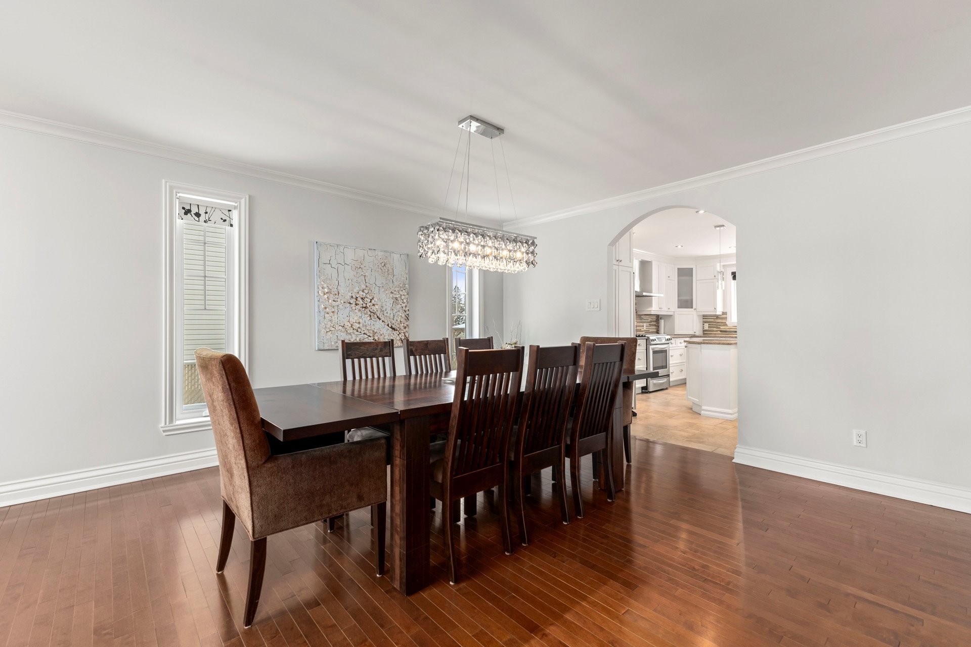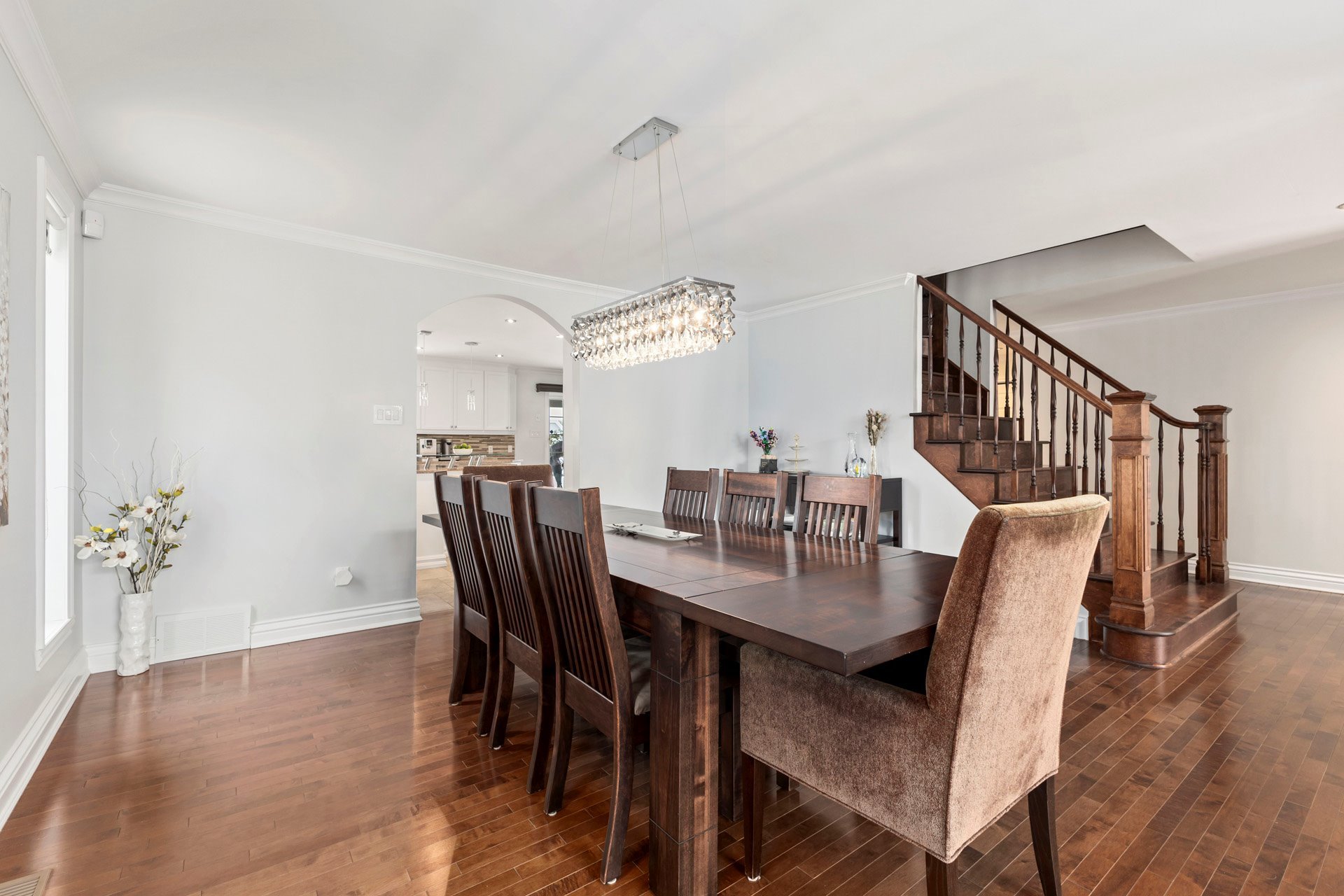 main-floor layout showcases rich hardwood flooring and