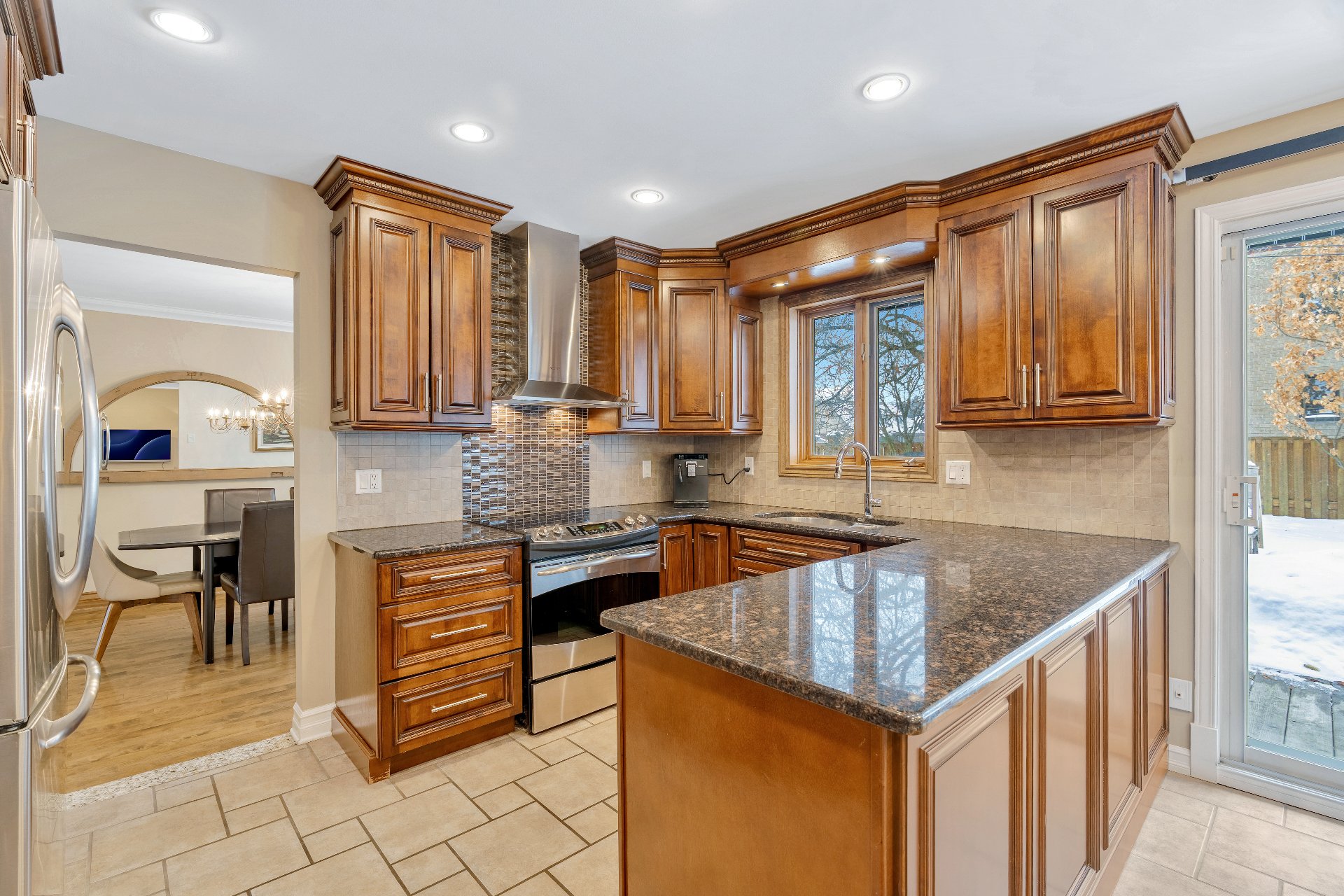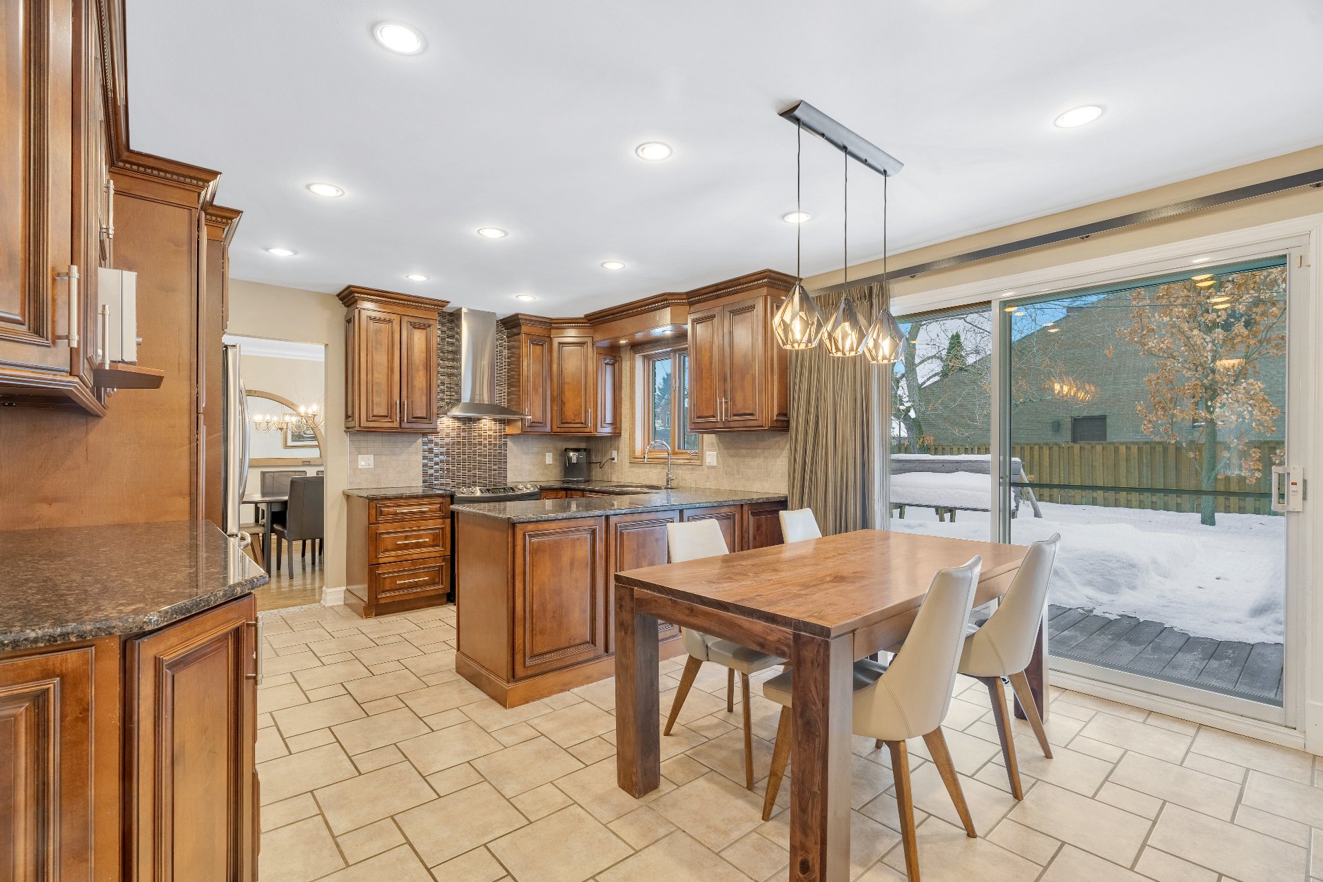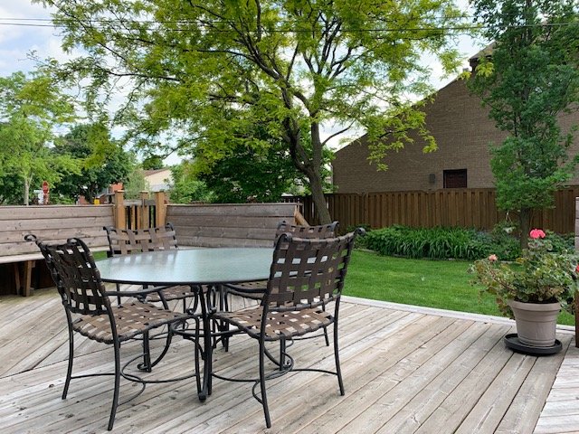 dinners. Patio doors lead to a newer wood deck and a large