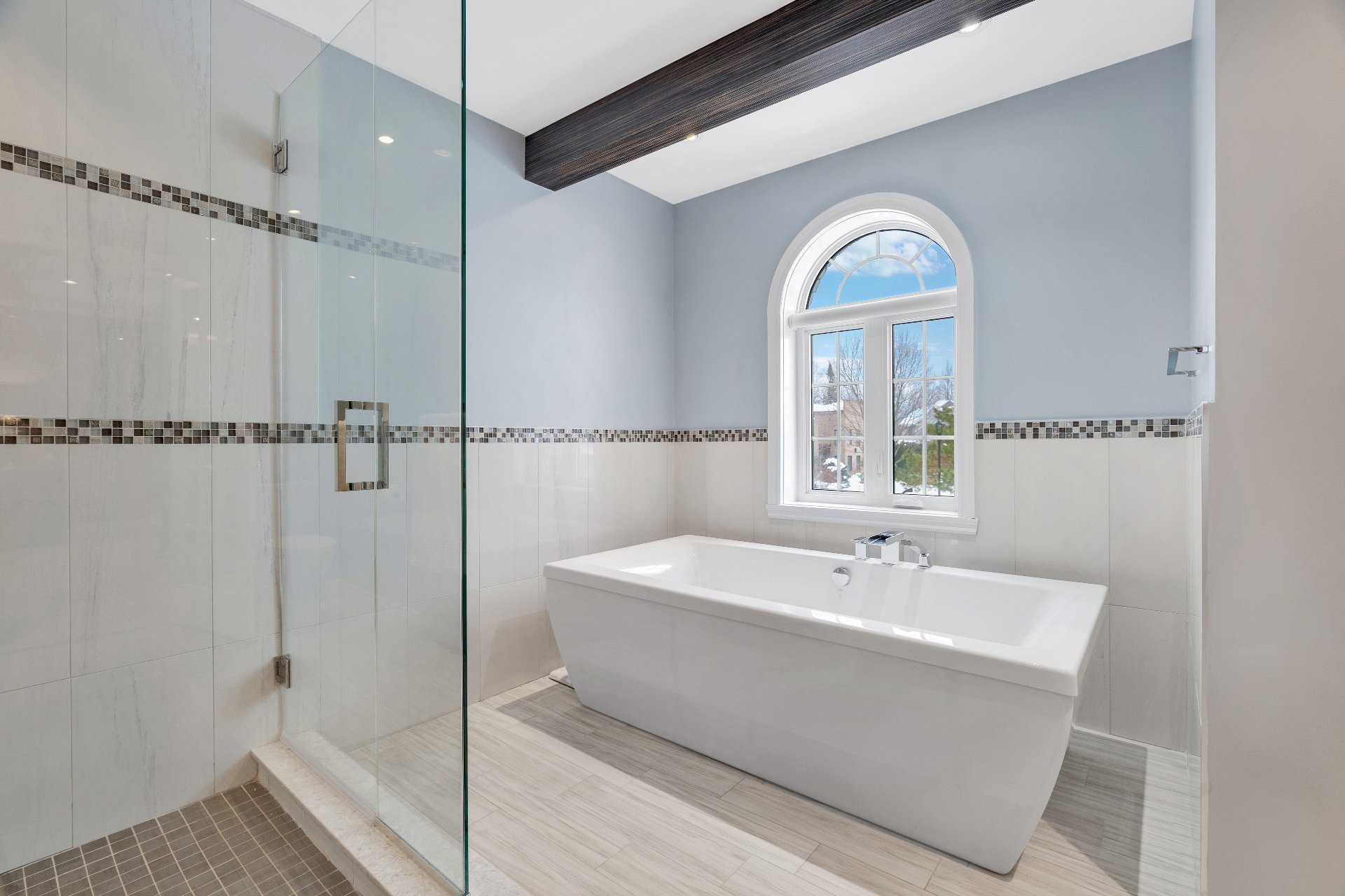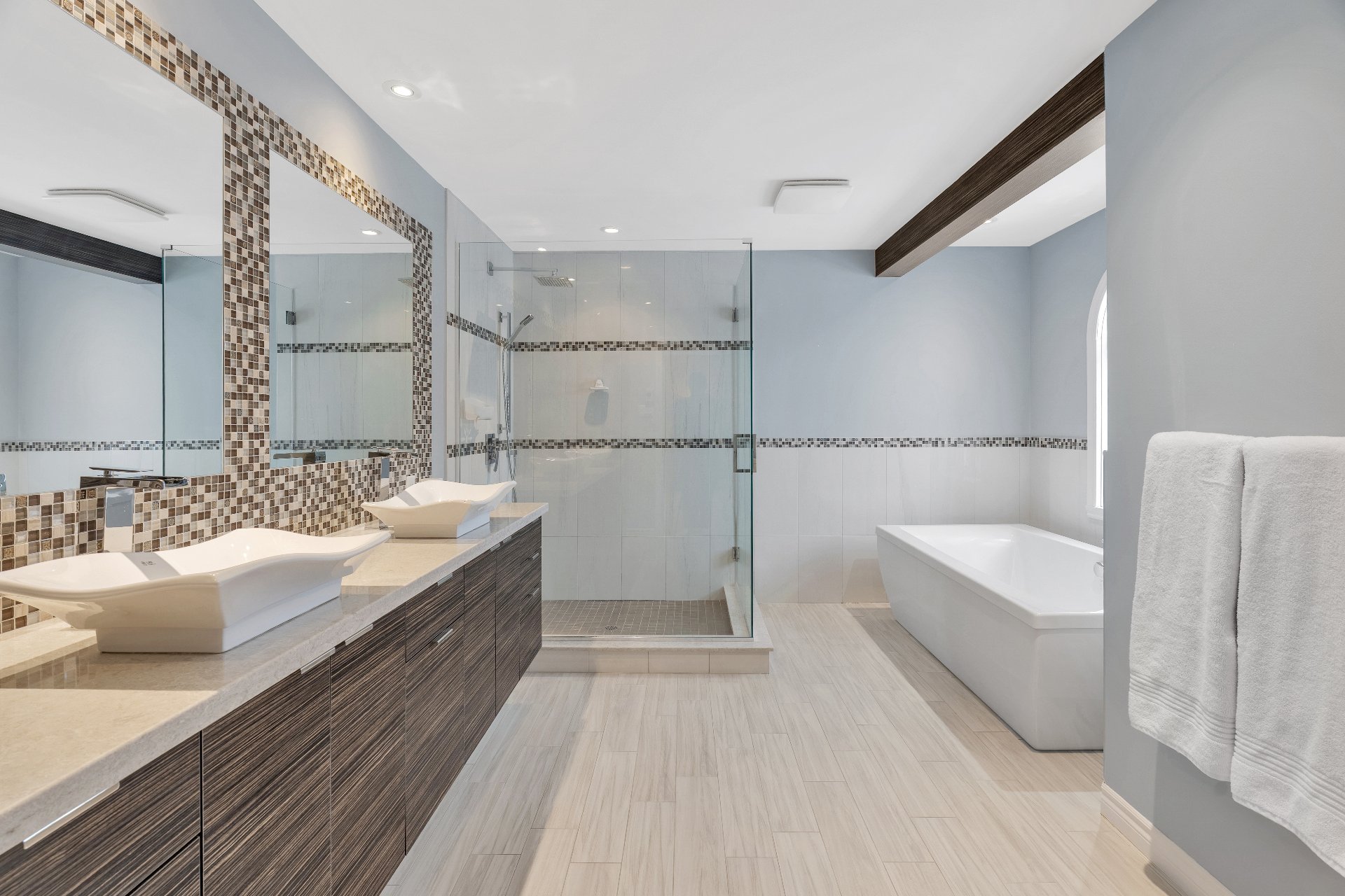 newly renovated ensuite bathroom with a soaker tub, large
