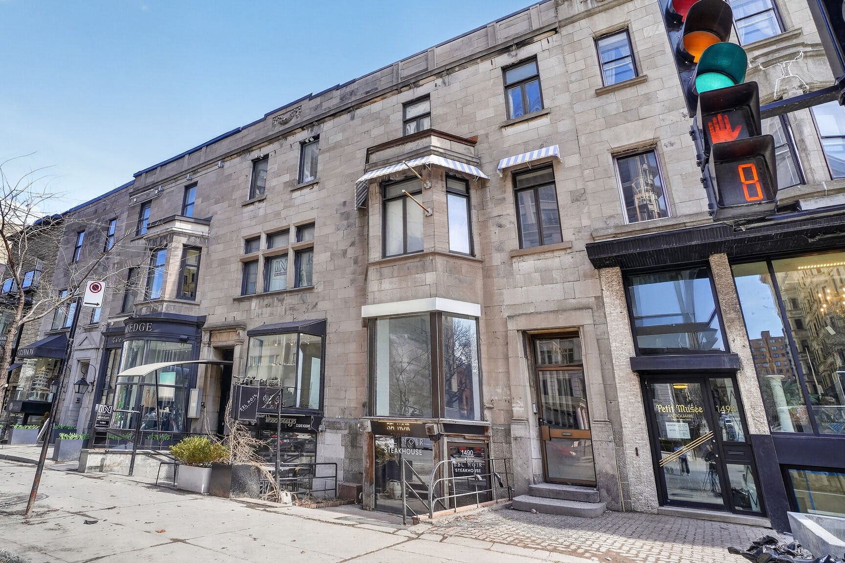 1,830 SF of prime retail/office raised ground floor space at 1490 Sherbrooke West in the prestigious Golden Square Mile. Exceptional street visibility in an elegant greystone building, steps from luxury condos, museums, universities, and top restaurants including Beatrice and Il Cortile. Bright open-concept layout with high ceilings, ideal for a variety of uses (C.6 Zoning). Features private bathroom and kitchen. A rare opportunity to establish your business in a sought-after, high-traffic location. Easy to visit and available immediately.