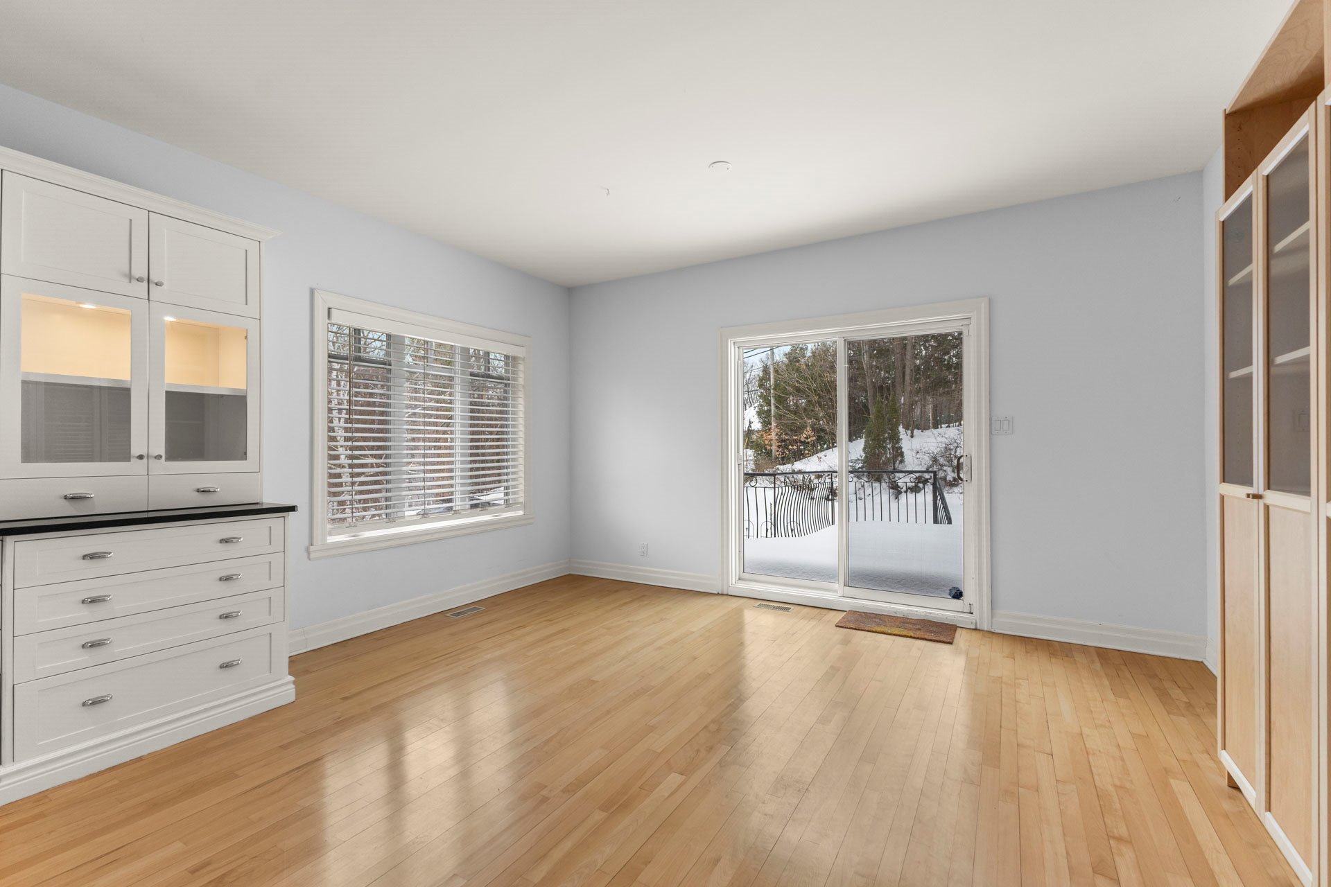 bathed in natural light from the patio doors that lead to
