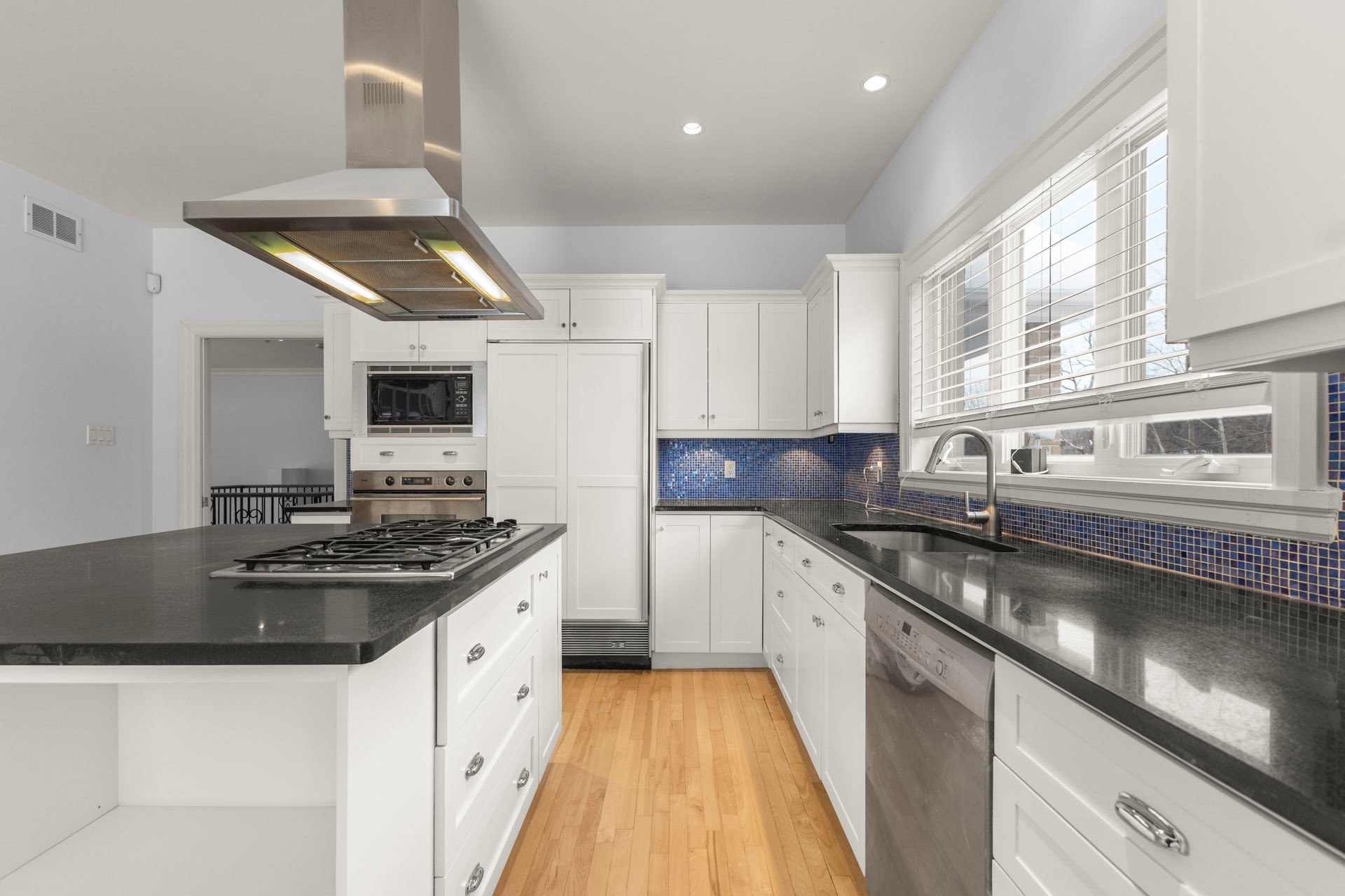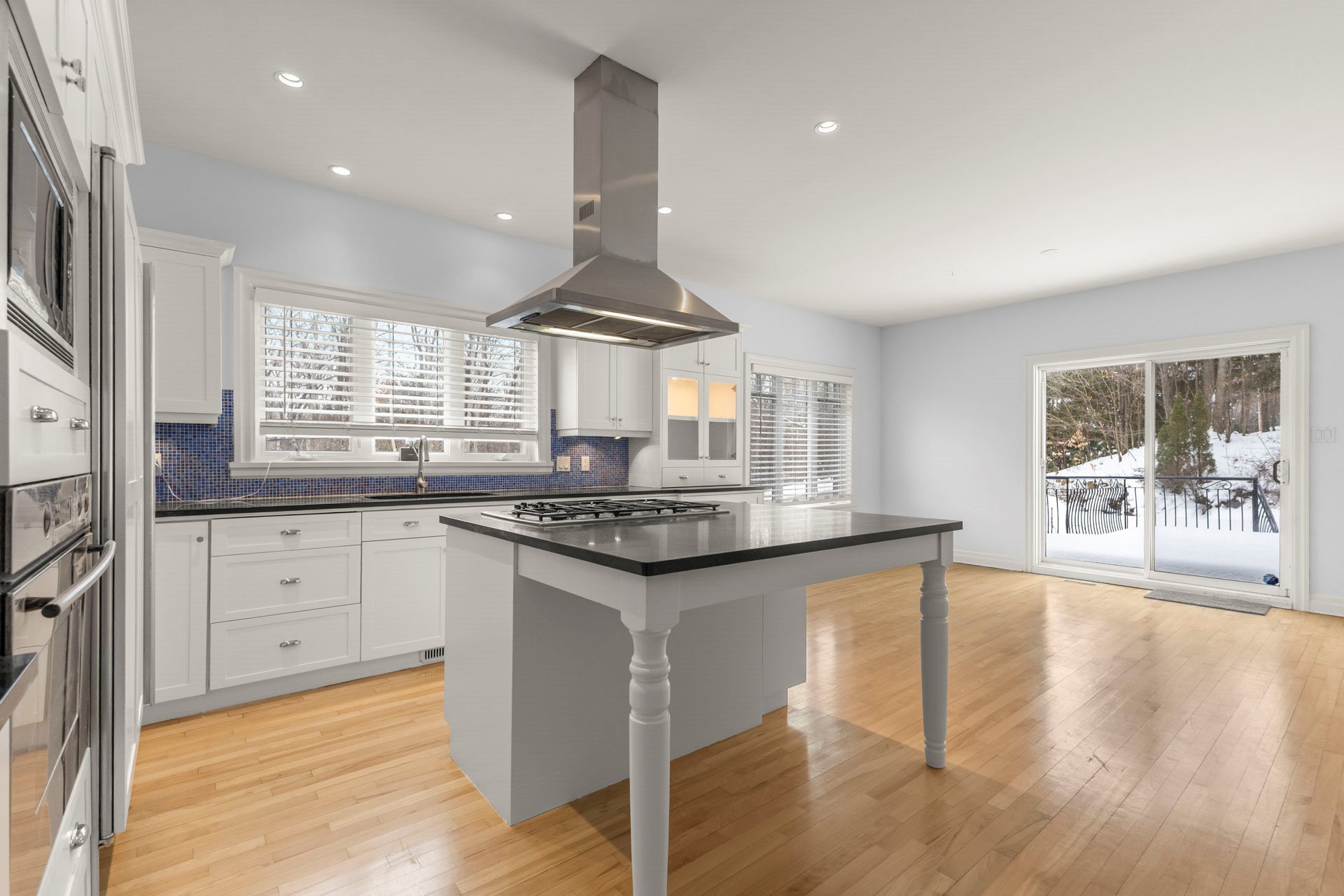 island, and sliding doors that open to the side yard and