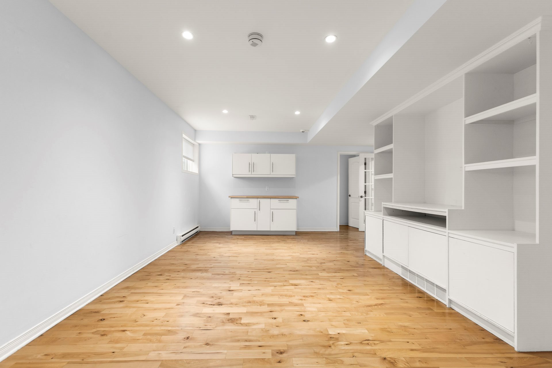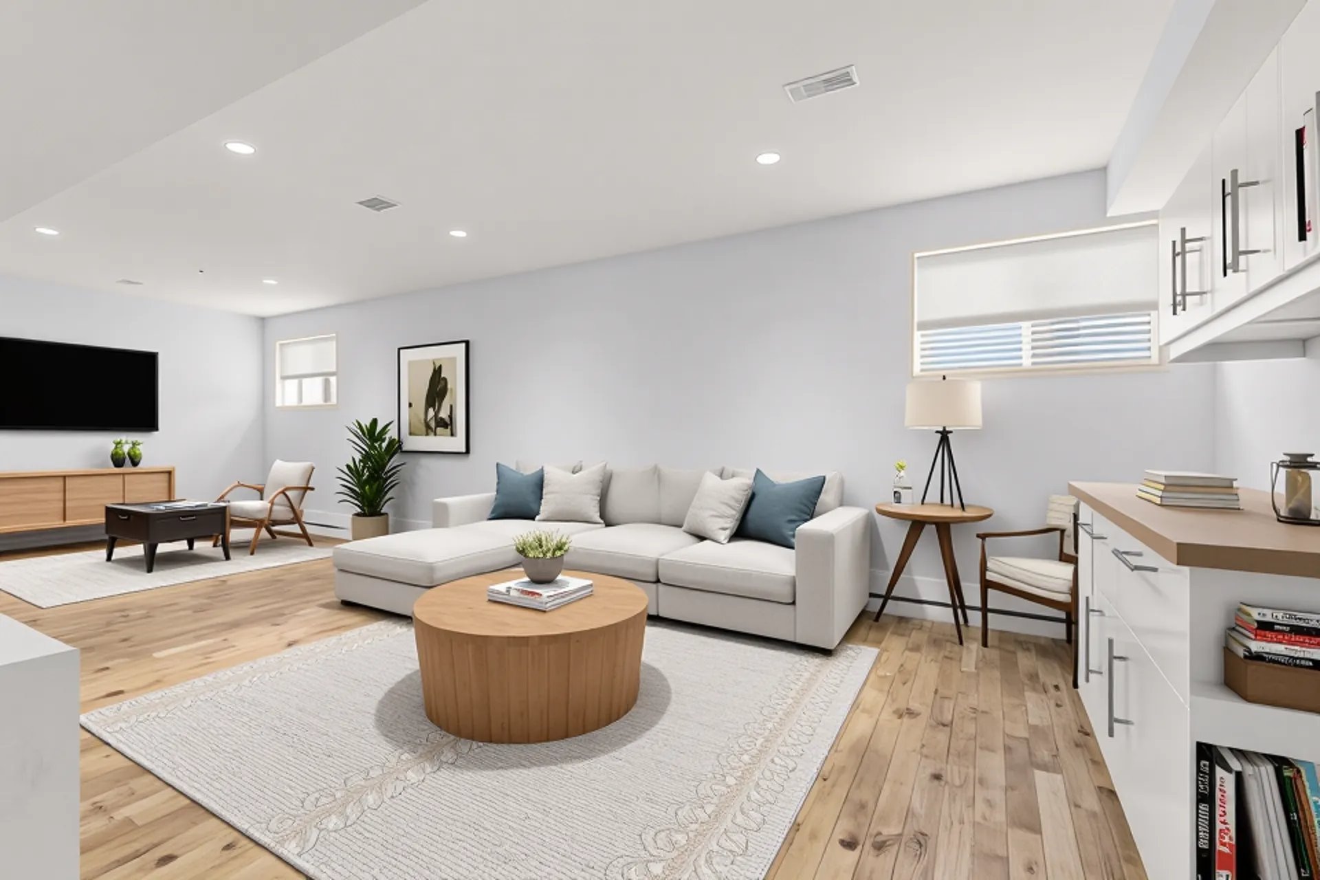 feels anything but below grade. The layout is ideal for