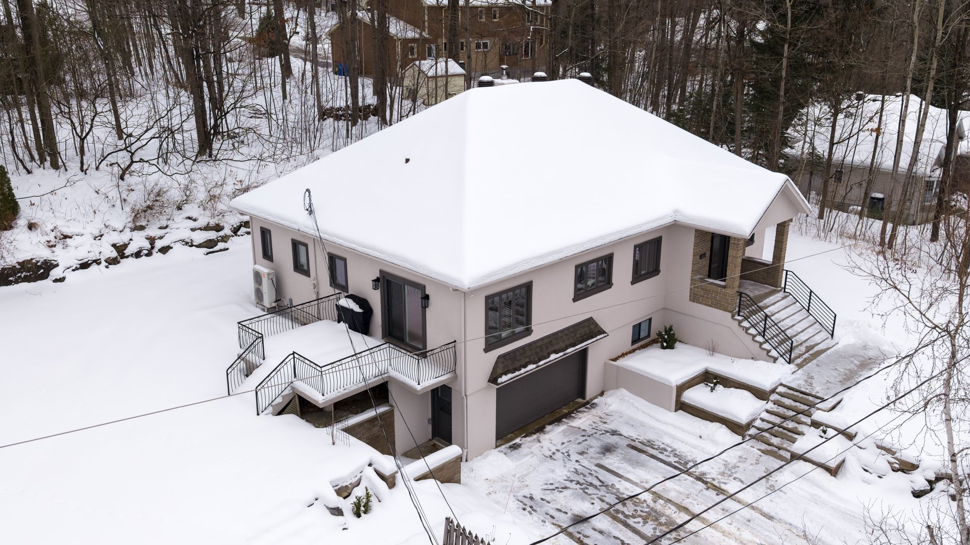 Beautiful 3+2 bedroom, 3+1 bathroom hillside home, offering space, privacy and a versatile layout. The main floor features a formal living room with fireplace and deck access, large eat-in kitchen, office, powder room, 3 bedrooms including a private primary suite with walk-in and ensuite, plus family bath. Fully finished bright basement with 2 bedrooms, office, family room, full bath and garage entry. Attached 2-car garage, air exchanger, forced-air heating. Ideal for large or multi-generational families. Furnace and heatpump 2022. Many upgrades in 2024 see sellers declaration.