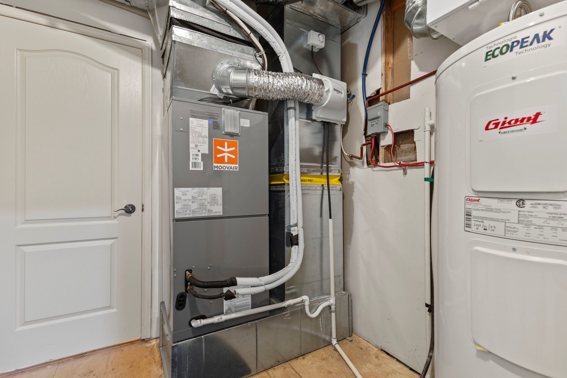 forced-air heating, supplemented by baseboard heating in