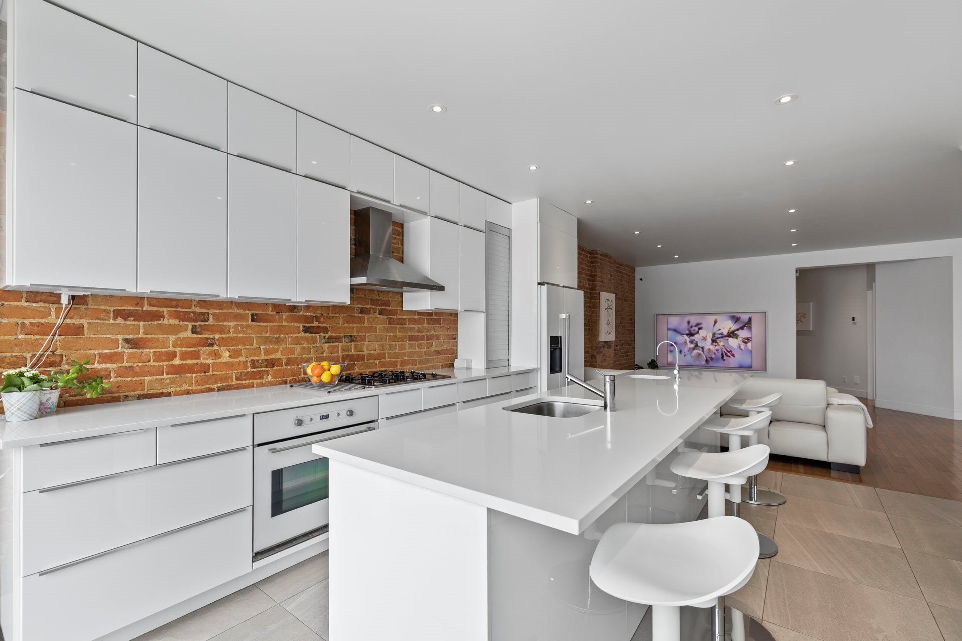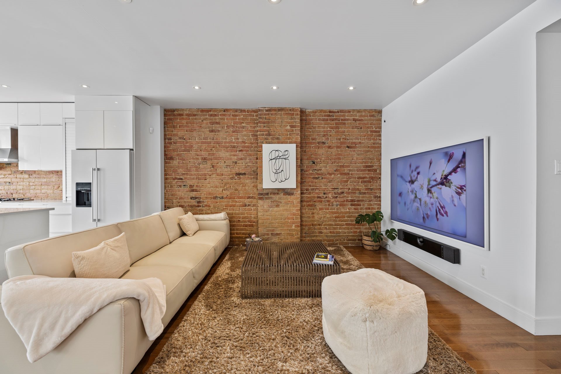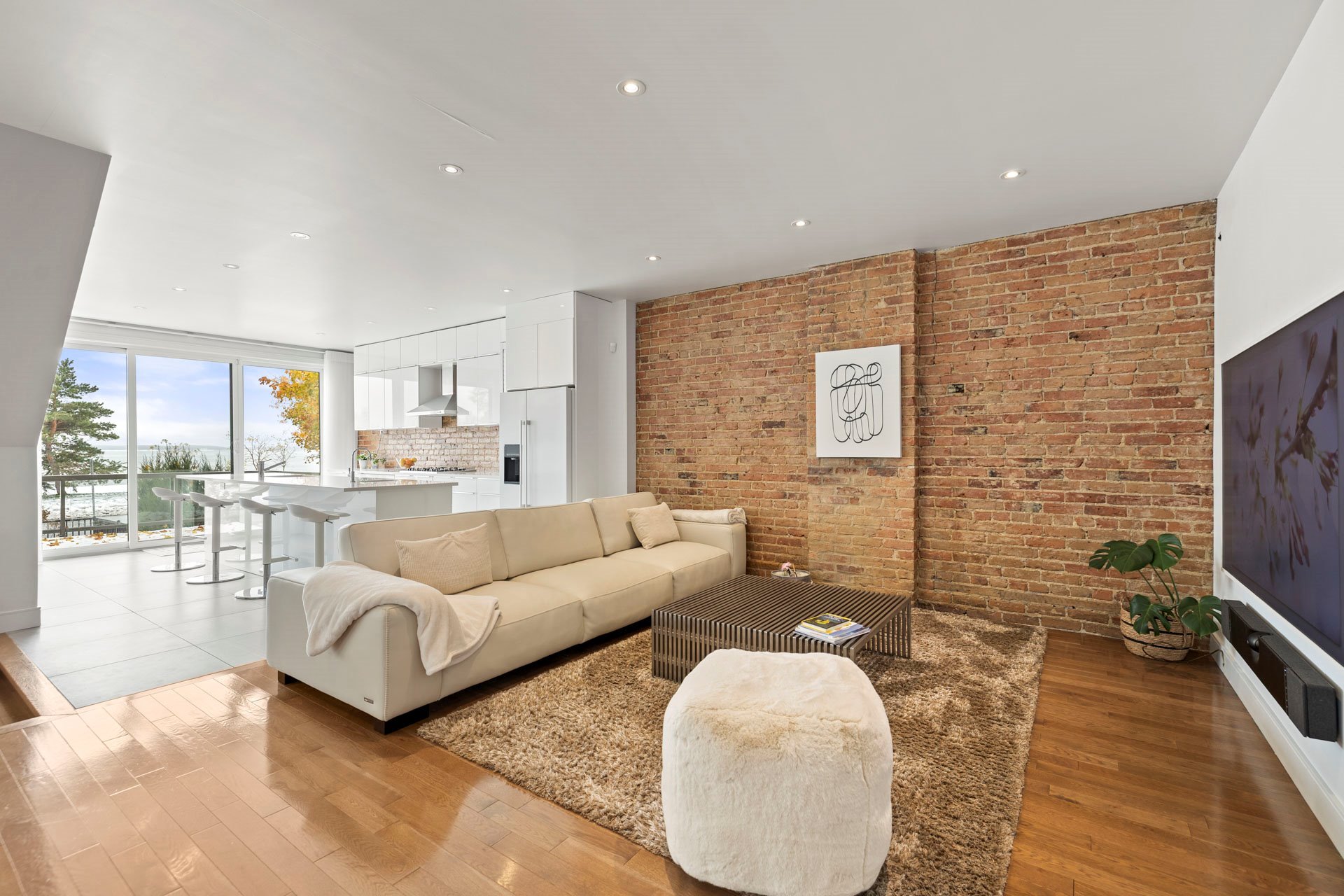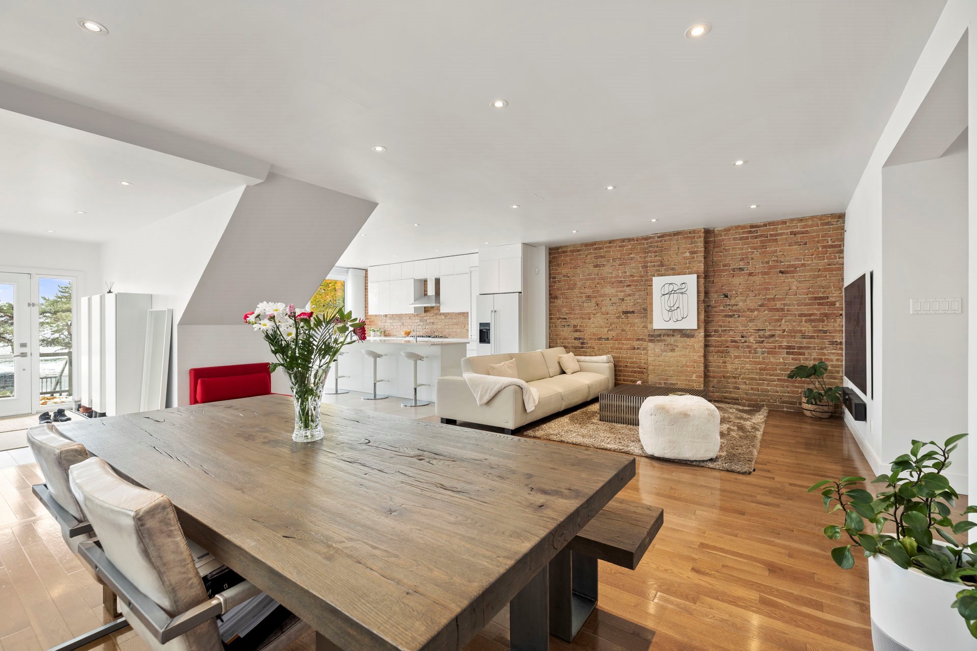 Elegant open-concept living, dining, and kitchen area